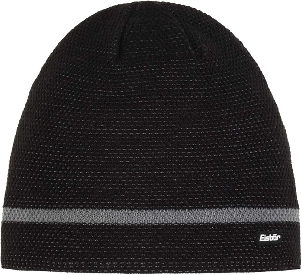 Ensuring safety on the slopes. A functional blend of materials makes this reflective beanie from Eisbr into a must-have item for the ski season. It protects the head from the cold and wind and increases the visibility of its wearer - not only when youre skiing, but also while youre out walking or jogging during the darker months of the year. As a fashionable accessory, this knitted hat complements sporty outdoor outfits to perfection. With strikingly contrasting stripes and a label patch.
