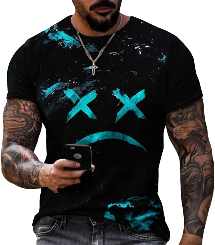 Please double check the size chart below the picture or product description to make sure it fits your body. There are a variety of patterned styles of clothing to choose from. This men's t-shirt is a classic crew neck with short sleeves and a textured pattern for a versatile fit, ideal for everyday wear as well as workouts.
