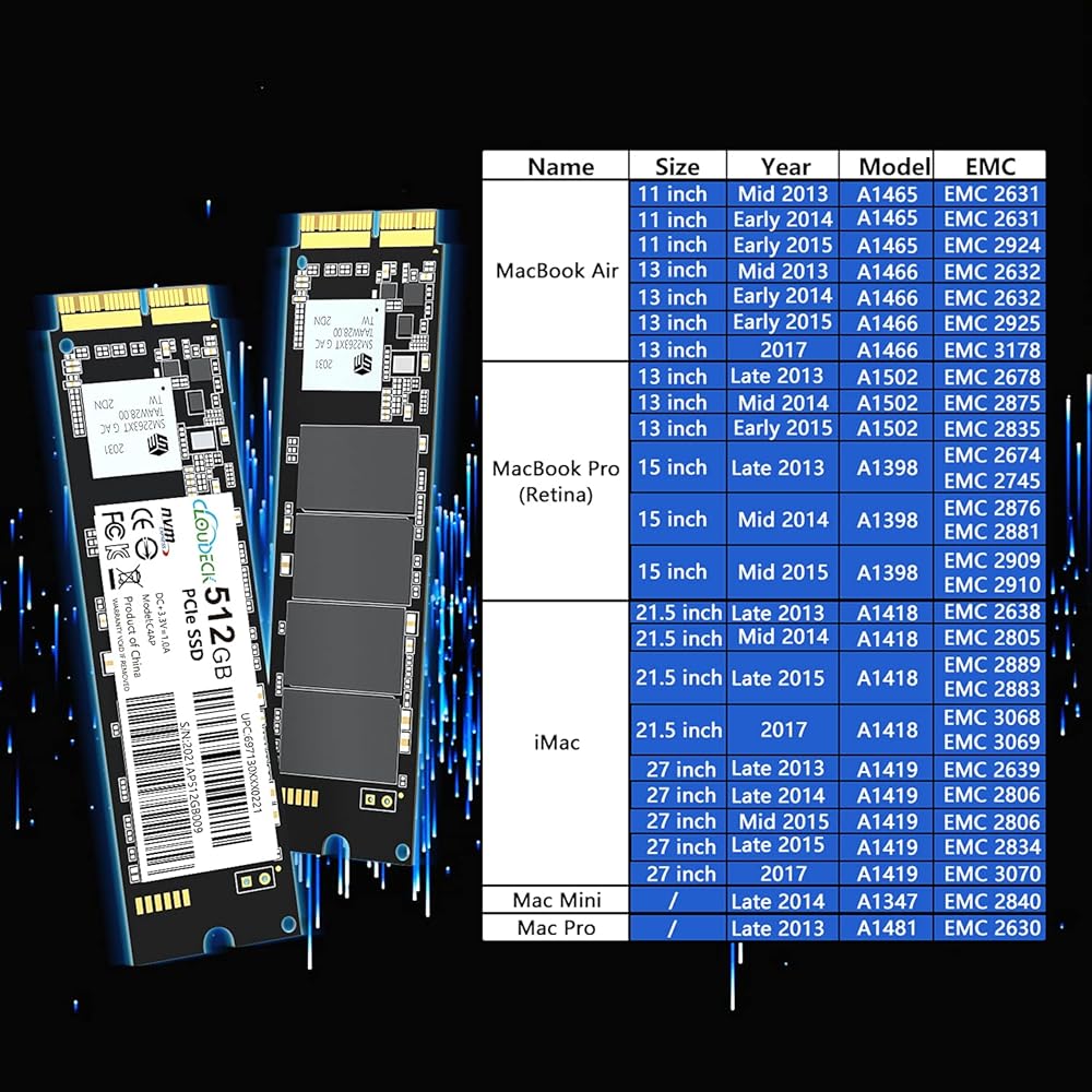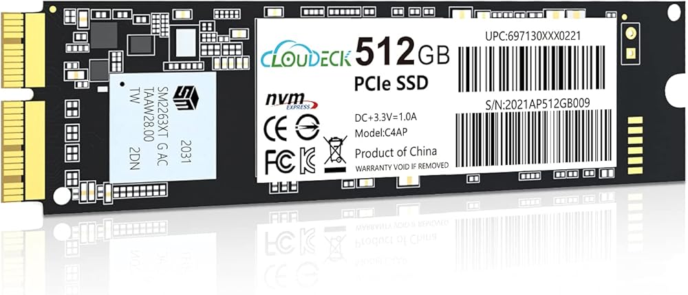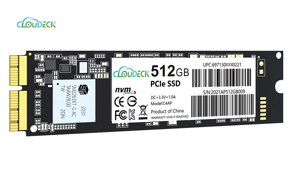 محرك الأقراص الصلبة الداخلي Cloudeck NVMe SSD 512GB PCIe Gen3x4 مع 3D NAND لجهاز MacBook Air (منتصف 2013-2017)، وMacBook Pro(Retina، أواخر 2013-منتصف 2015)، وMac Pro(2013) وMini (2014)، وiMac(2013-) 2017)