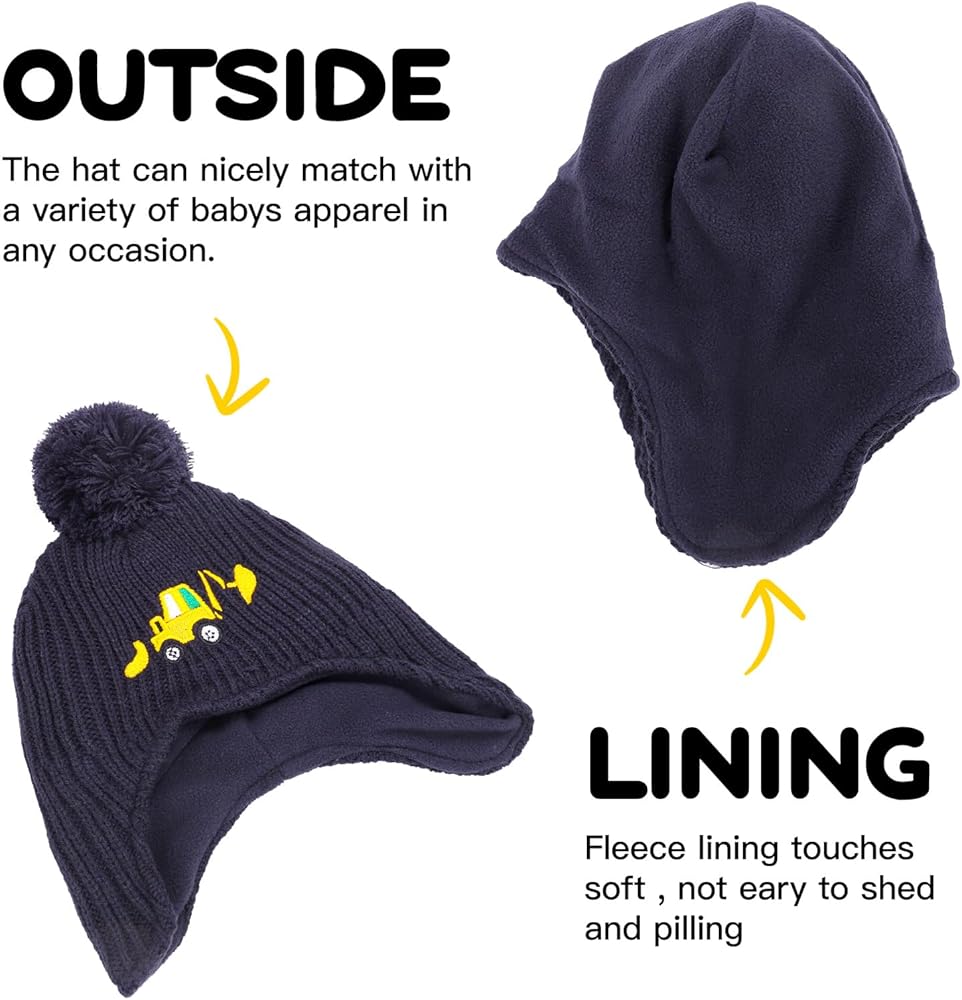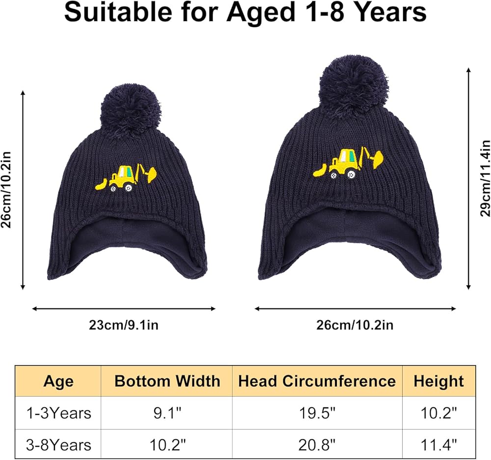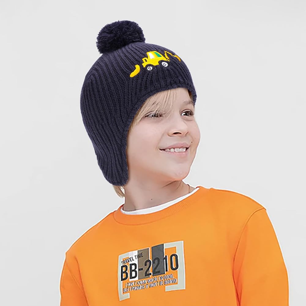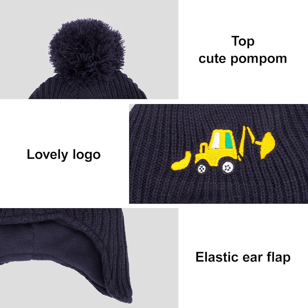 تصميم رائع: قبعة شتوية بنمط حفارات مطرزة لطيفة مع أغطية أذن سميكة. هل يحب طفلك الحفار؟ الحفارات للأطفال هي واحدة من أعظم الألعاب! إنها لا تساعد الأطفال على تطوير الخيال والإبداع في المركبات فحسب، بل تلهم أيضًا اهتماماتهم بالمهن المرتبطة بها. تصميمنا الرائع لتطريز الحفار يجعل أطفالك أنيقين وسيحبون ارتداء قبعة الحفار الخاصة هذه.