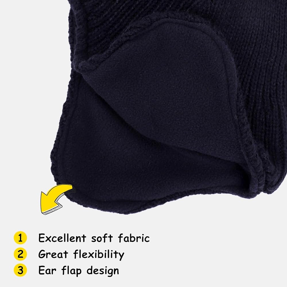 خامة عالية الجودة: قبعة صغيرة للأطفال الصغار مصنوعة من نسيج أكريليك بنسبة 100% لتوفير الراحة والدفء الإضافي. مواد محبوكة ناعمة ومريحة، دافئة بشكل طبيعي. أغطية أذن على الجانبين لمزيد من الدفء، واستمتعي بدفء إضافي وحماية طفلك حتى في أبرد الشتاء.