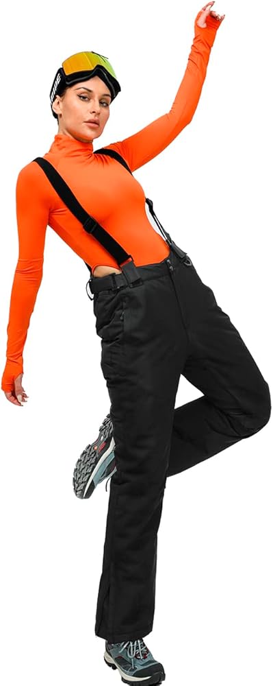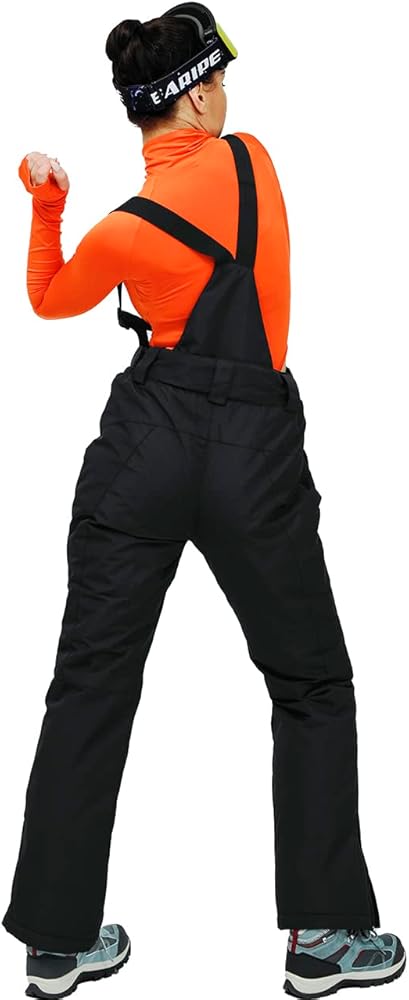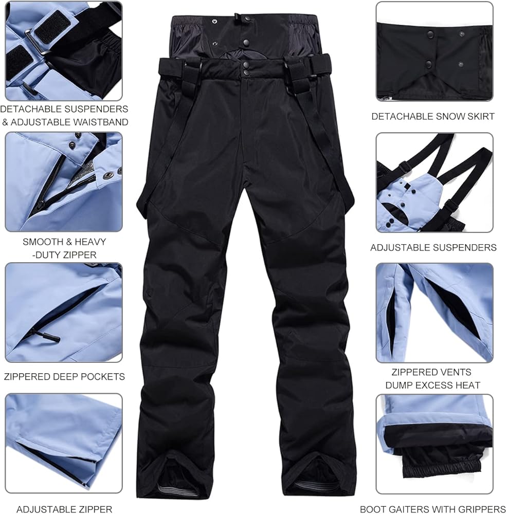 Bib Snow Pants for Women Waterproof Insulated,Ski Pants with Detachable Powder Skirt and Suspenders for Snowmobiling