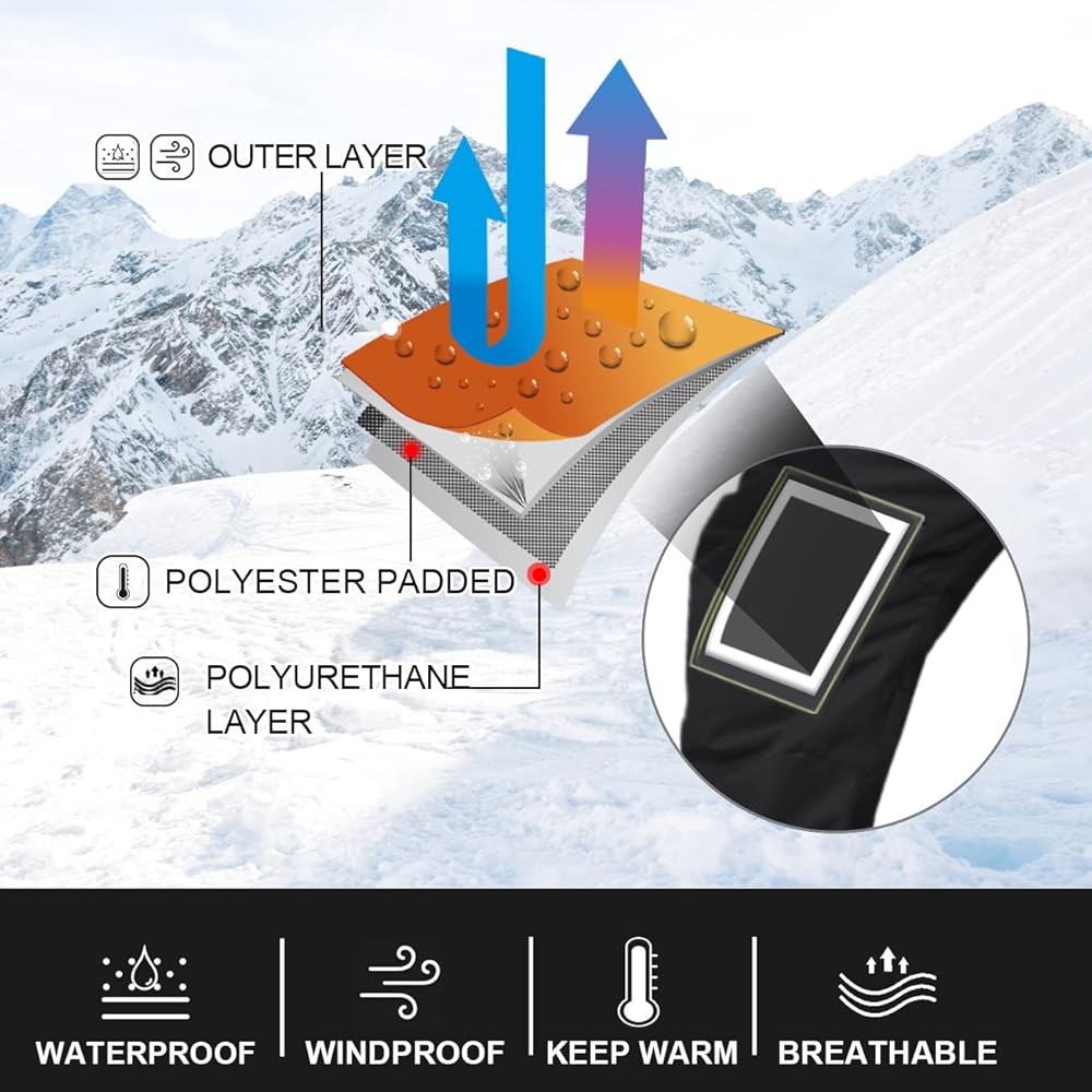 Snowproof: Treated with Durable Waterproof to make this outerwear water repellent. Waterproof and breathable functions keeps your body dry and comfortable while skiing and snowboarding. extra thick warmth, comfort and snug. Regular fit pants keep you warm without bulky.