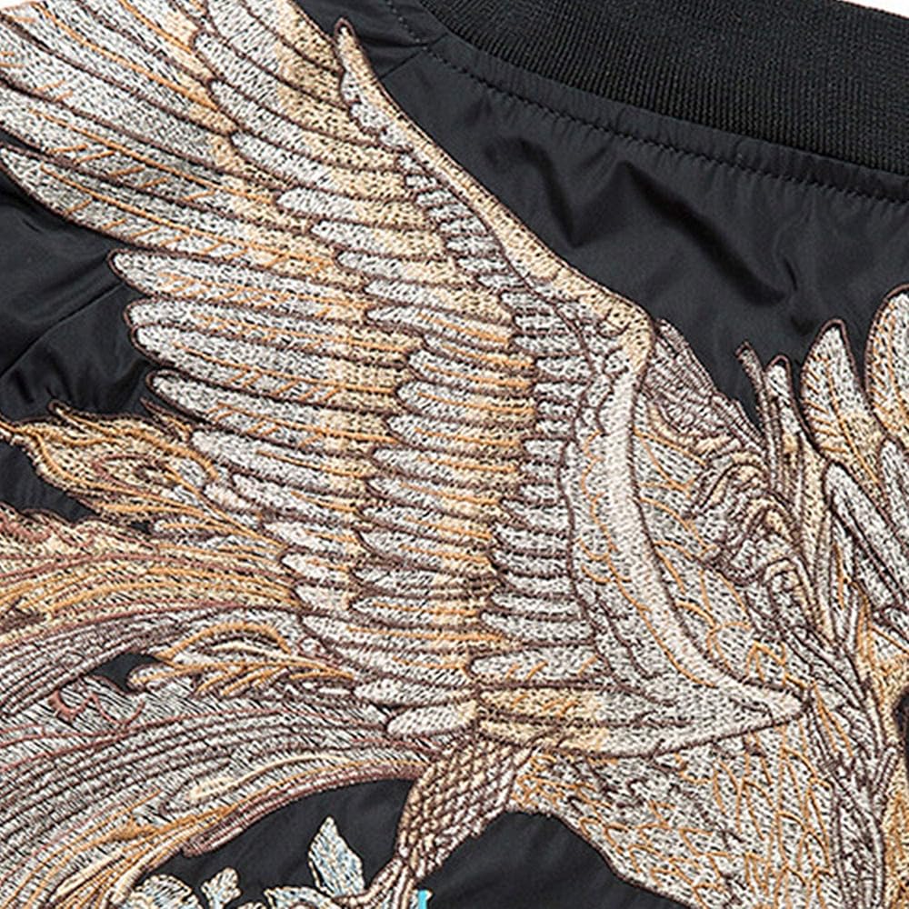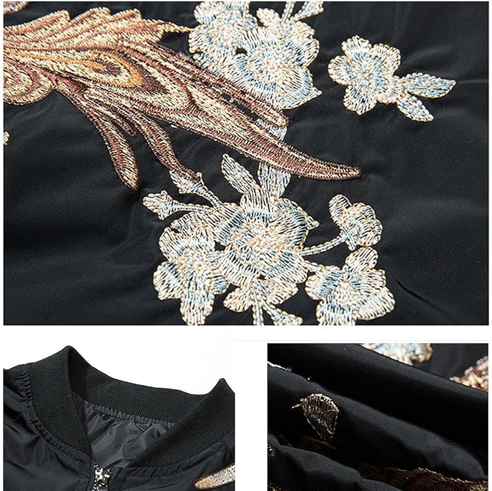 (تصميم مميز مطرز بطائر الفينيق) يستخدم الجزء الخلفي من هذه السترة الرجالية نمط الفينيق. طائر الفينيق هو نوع من الطيور الميمونة وله مكانة عالية جداً في الصين واليابان، ويعني الحظ السعيد والسعادة.