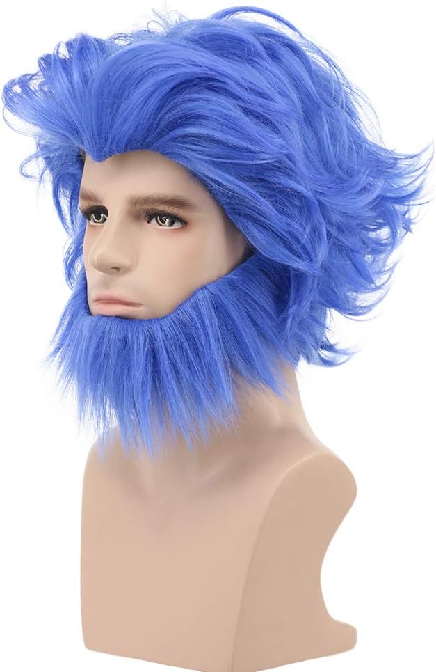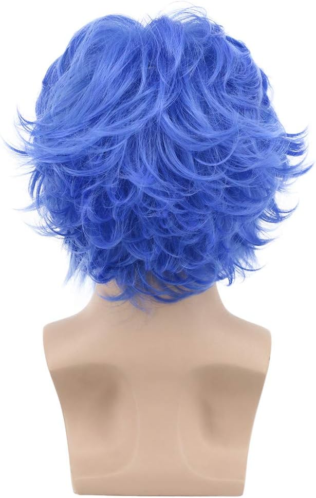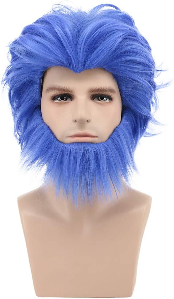 شعر مستعار VGbeaty للبالغين وين قصير أزرق مجعد للشارب، شعر مستعار لزي الهالوين التنكري