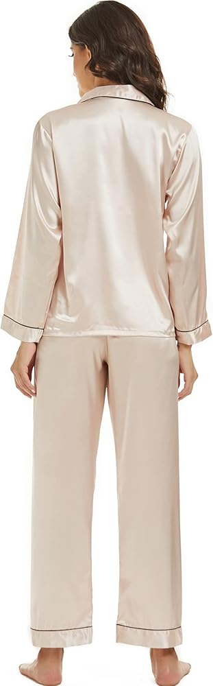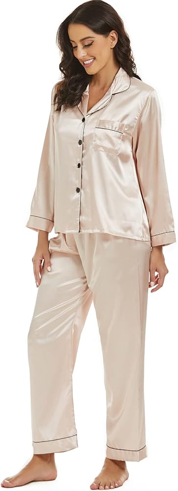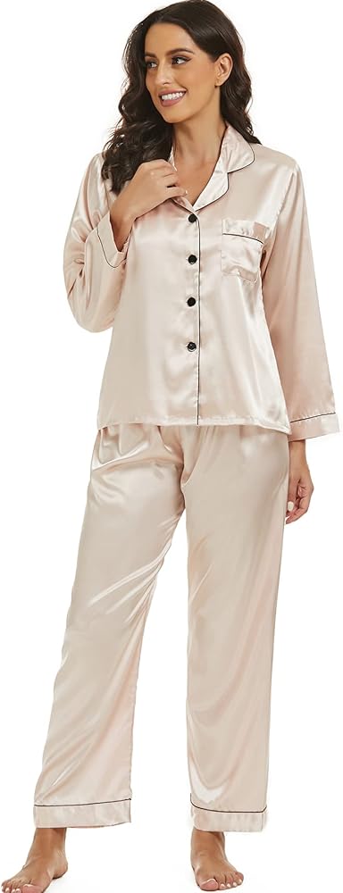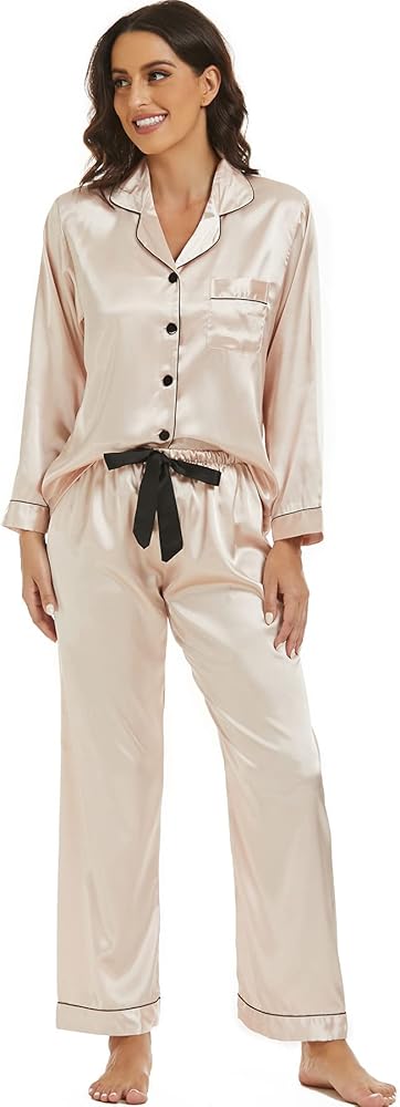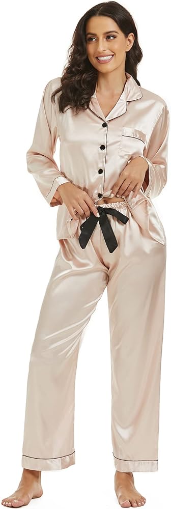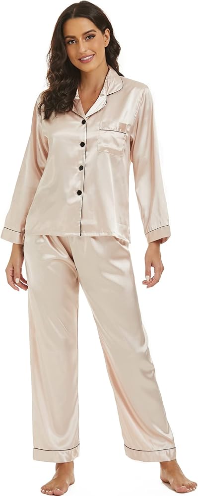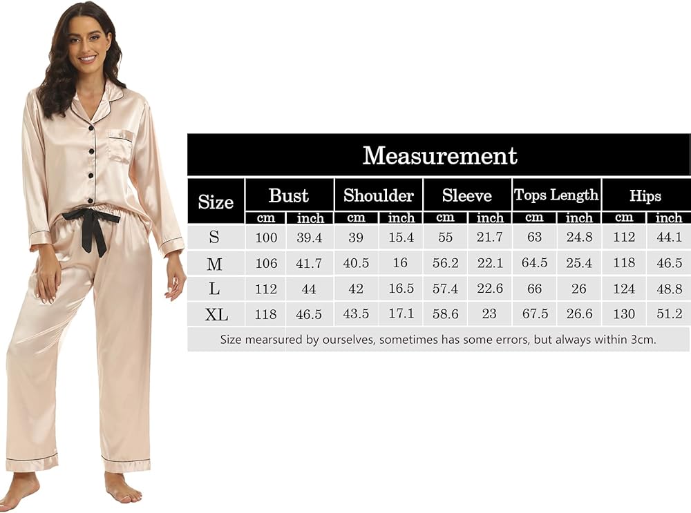 المواد: طقم بيجامة حريري للسيدات مصنوع من قماش الساتان خفيف الوزن، مع شعور بالراحة ومسامي وصديق للبشرة. تساعدك مجموعات الملابس المكونة من قطعتين على الحصول على نوم مريح.