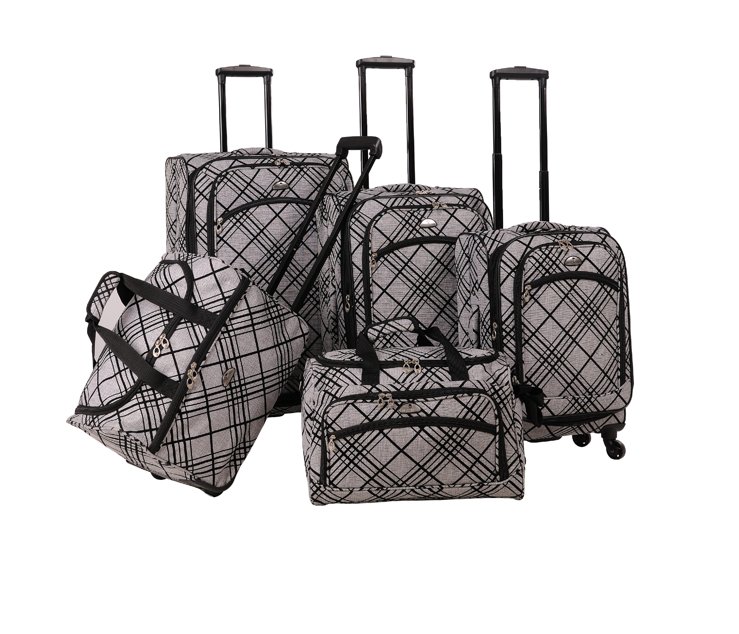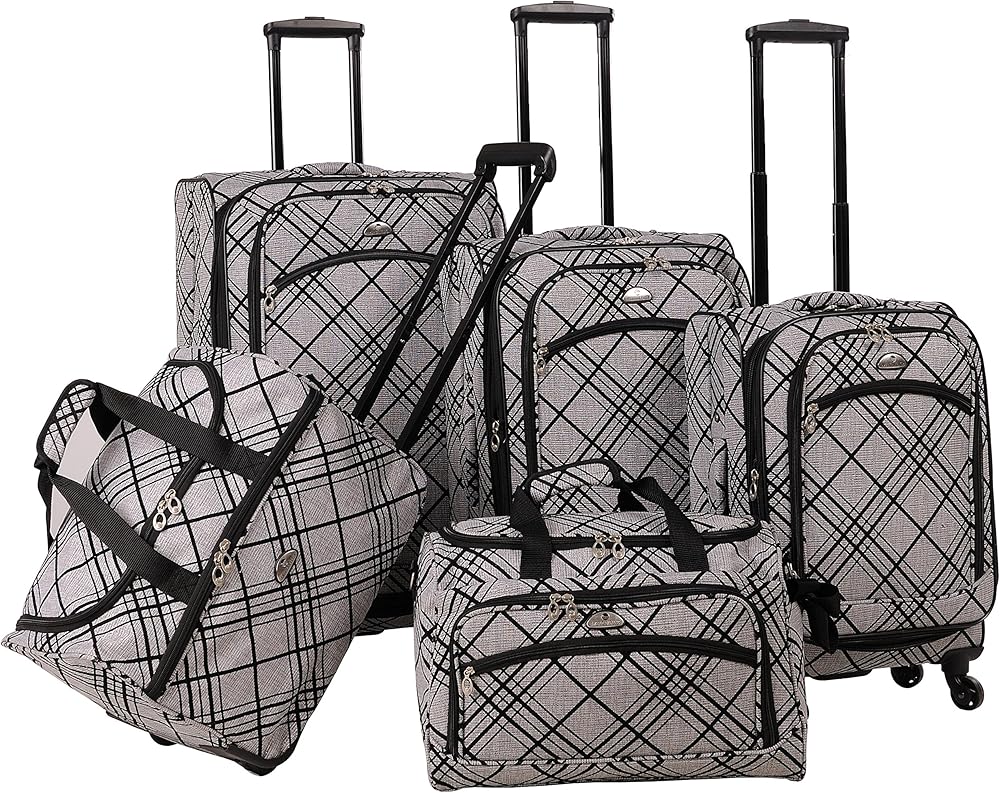 For over thirty years, American Flyer luggage has been designing baggage that is classic, innovative and fashion forward, while being durable and practical. American Flyer Silver Stripes Spinner 5-piece luggage set includes 3 Uprights (large/medium/carry-on) each with 4 spinner wheels, locking telescoping handles, expandability by 2-inches, top and side carry handles, multiple interior and exterior pockets, sturdy frame and light weight construction. This set also includes a Carry-on Wheeled Duffel that has a recessed telescoping handle along with a Personal Bag which has a carry handle and shoulder strap. Product comes with a 2 year warranty. Wheel 2 inches is not included in the actual body dimension