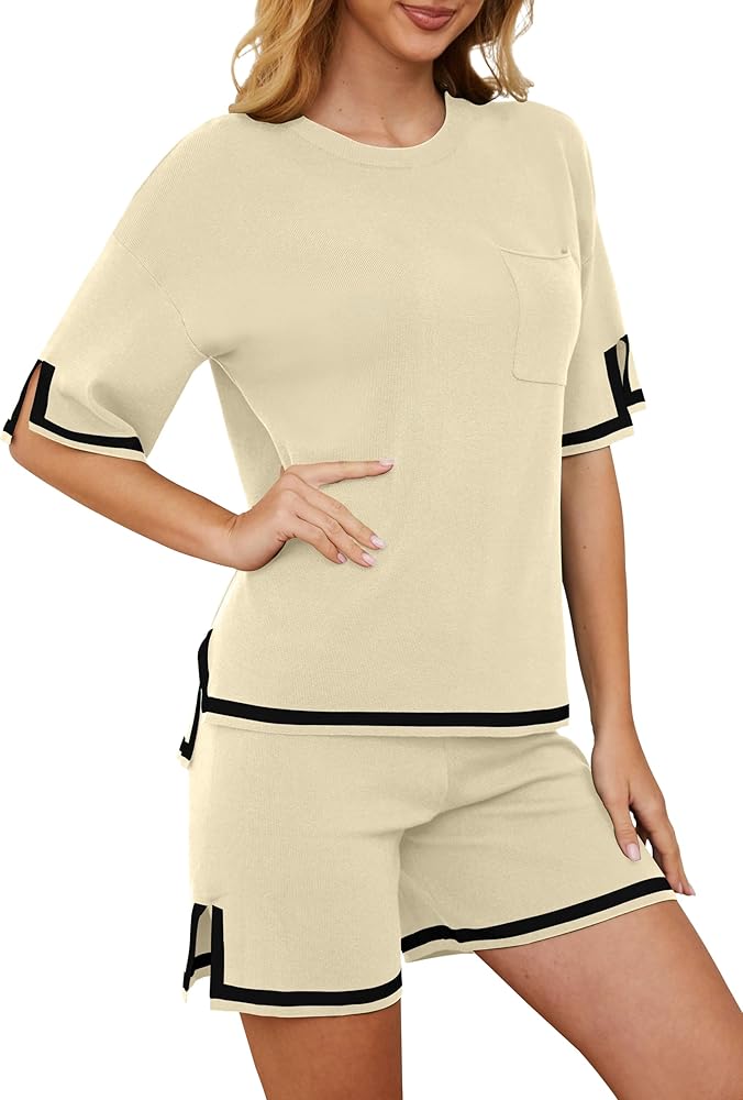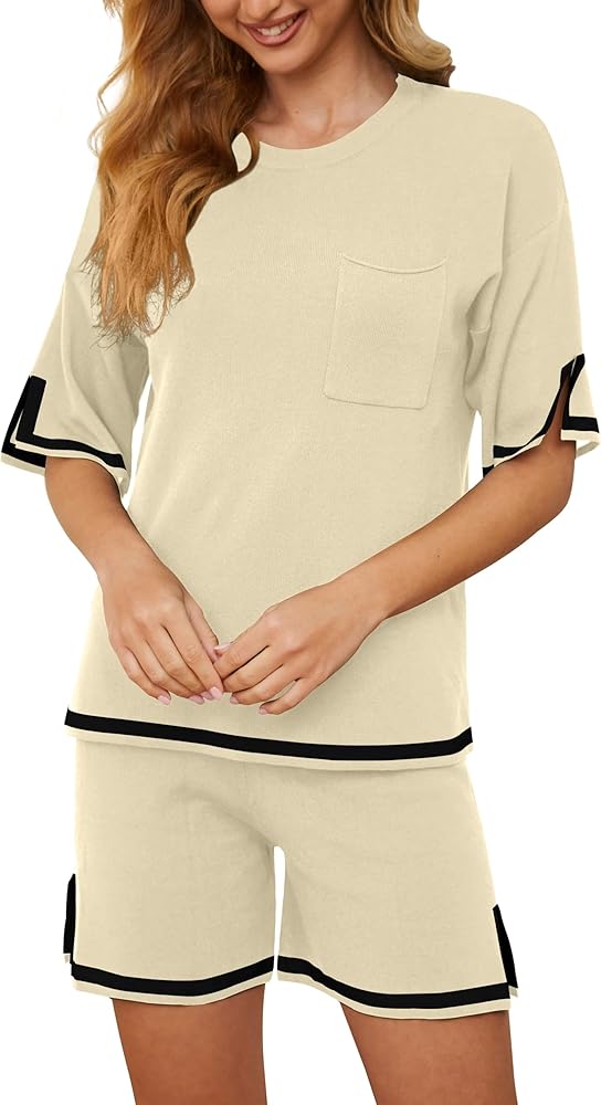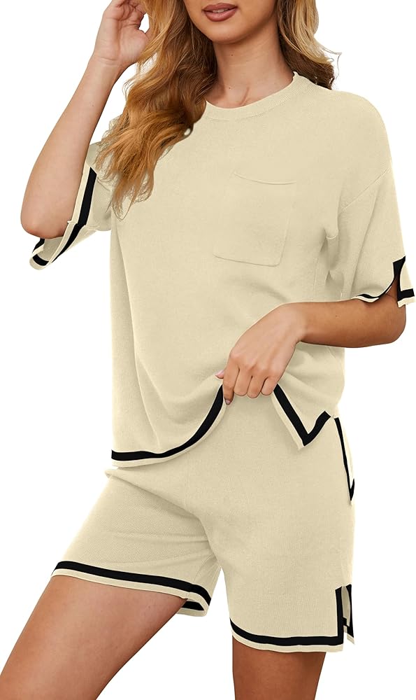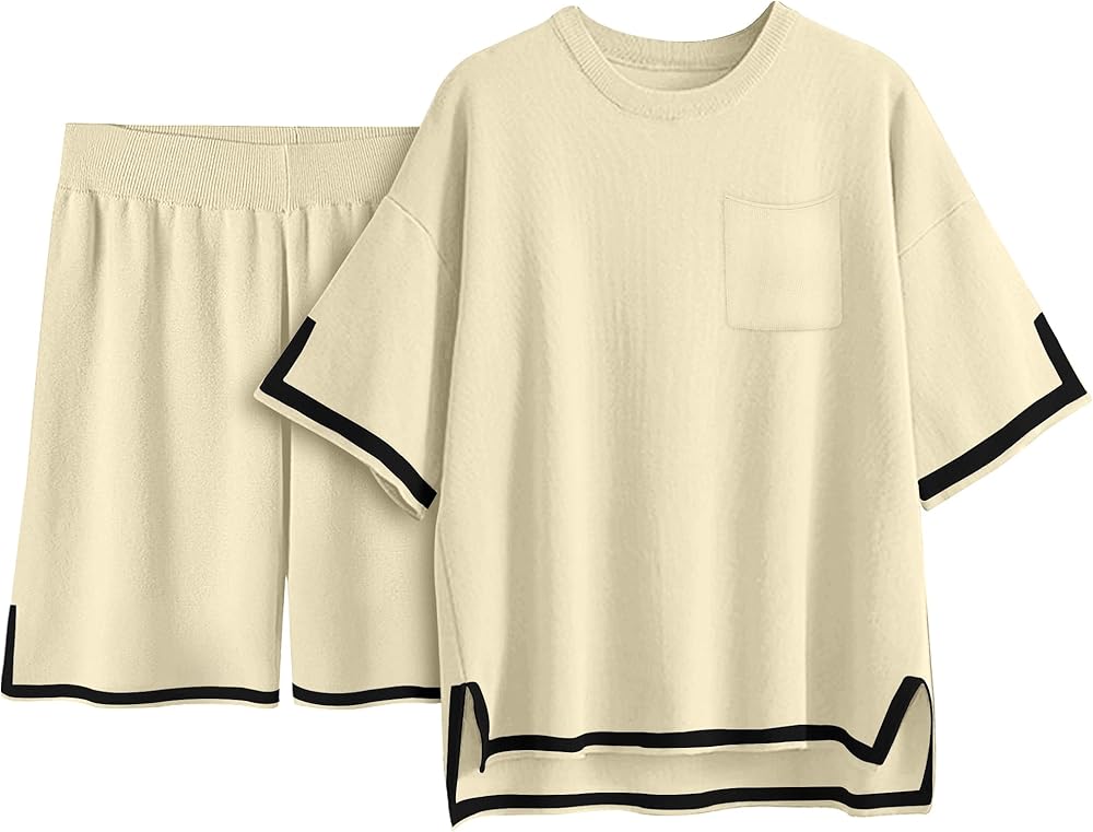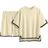 المميزات - تتضمن العبوة 1 × بلوفر علوي و1 × سروال قصير. قمصان محبوكة بأكمام قصيرة تتميز برقبة دائرية، وكتف دورب، وحاشية مقسمة، وجيب. سراويل قصيرة تتميز بخصر عالٍ، وحزام خصر مطاطي مريح، ومتعددة الألوان.