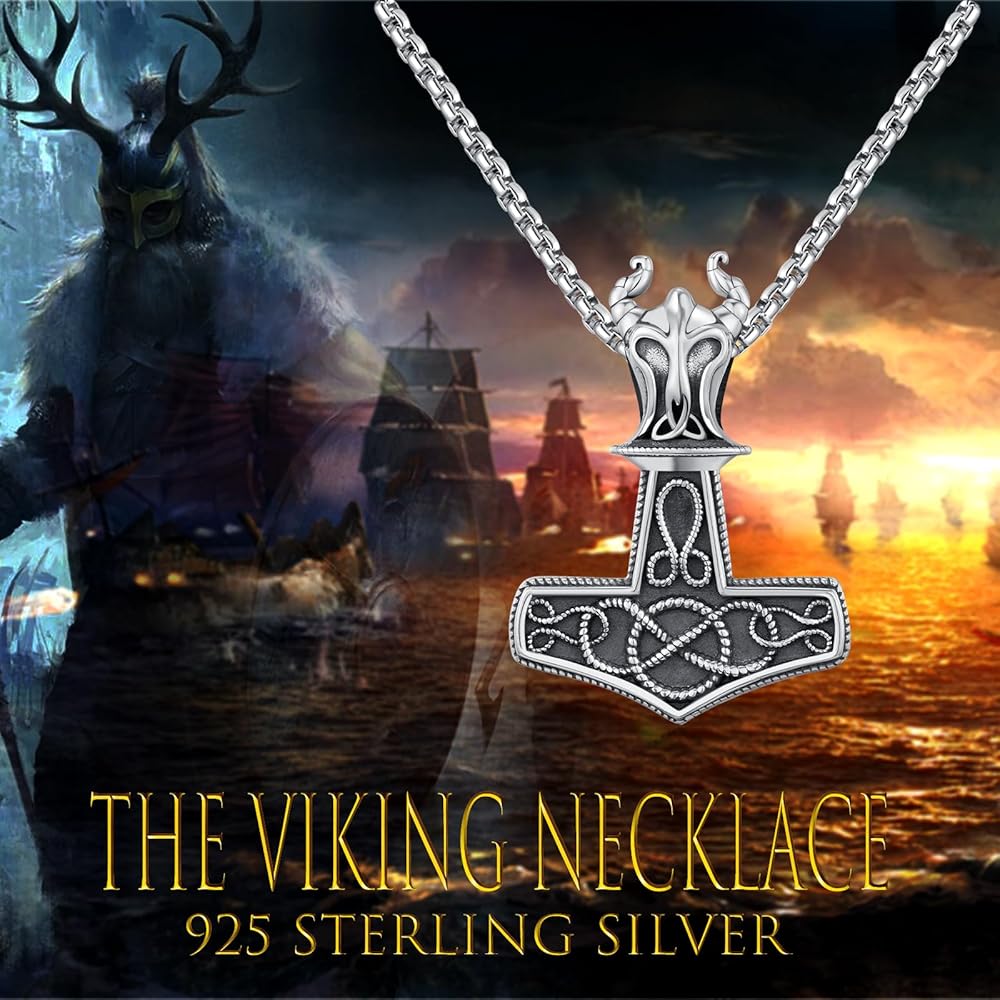 الشمال فايكنغ Mjolnir ثور المطرقة قلادة للرجال الأولاد Aegishjalmur المحارب خوذة قلادة الشرير الصخرة القلائد فايكنغ مجوهرات عيد الميلاد هدايا عيد الميلاد للرجل ابن أبي