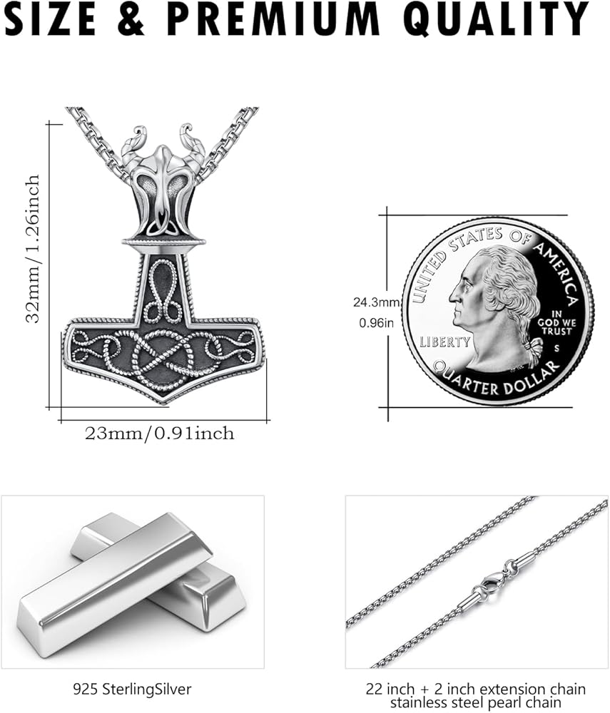 ❥Size&Weight: The Thor Hammer is 32mm*23mm; The weight is 8g; The chain is 22 inches+2inches extender