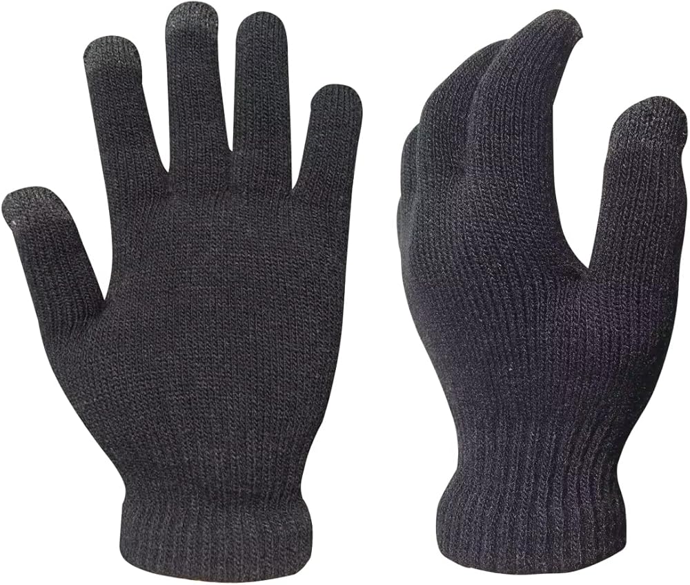 This glove is made by acrylic yarns with 3 touch screen finger tips