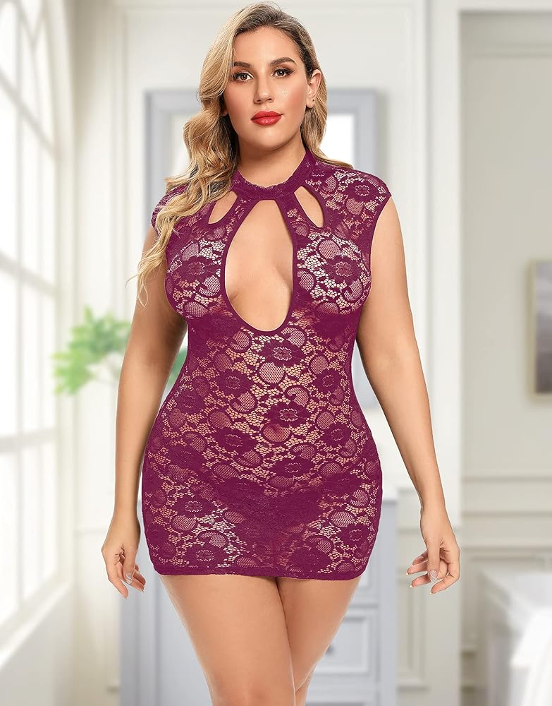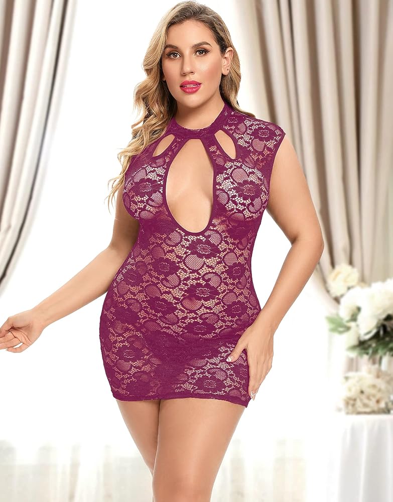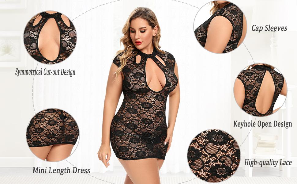 ❤ حوّل الرومانسية في هذه الملابس الداخلية المصنوعة من الدانتيل ذات الحجم الكبير التي تتميز بدانتيل ناعم قابل للتمدد، وخط عنق عالي مع تفاصيل مقصوصة، وفتحة ثقب للصدر، وأكمام على شكل قبعة، وخطاف وإغلاق على الجزء الخلفي من الرقبة، وصدرية شفافة من الدانتيل