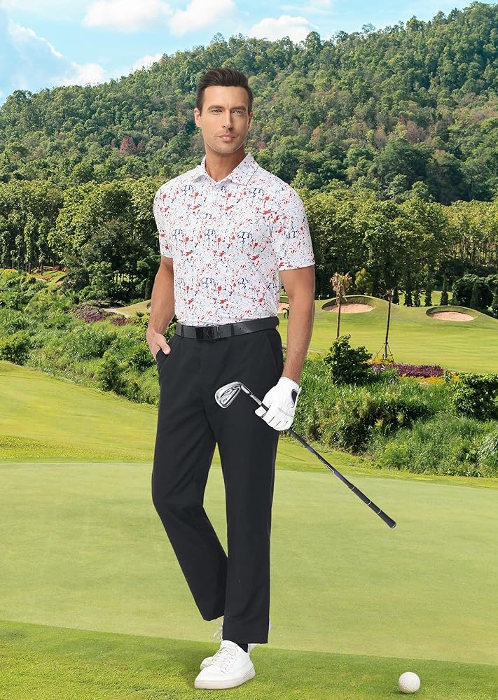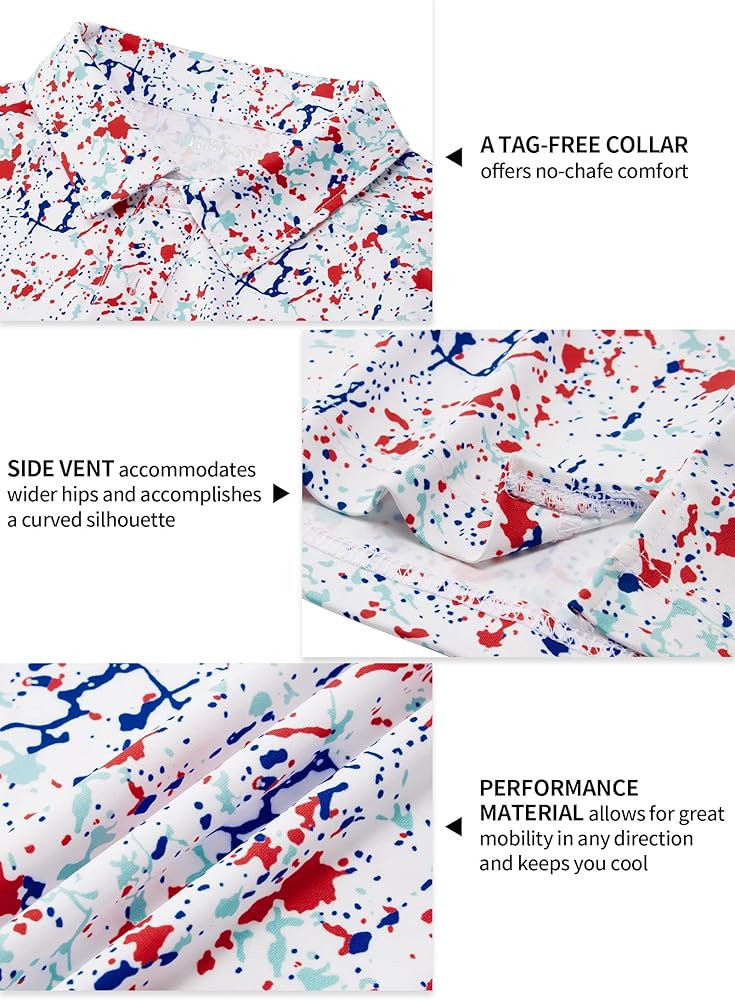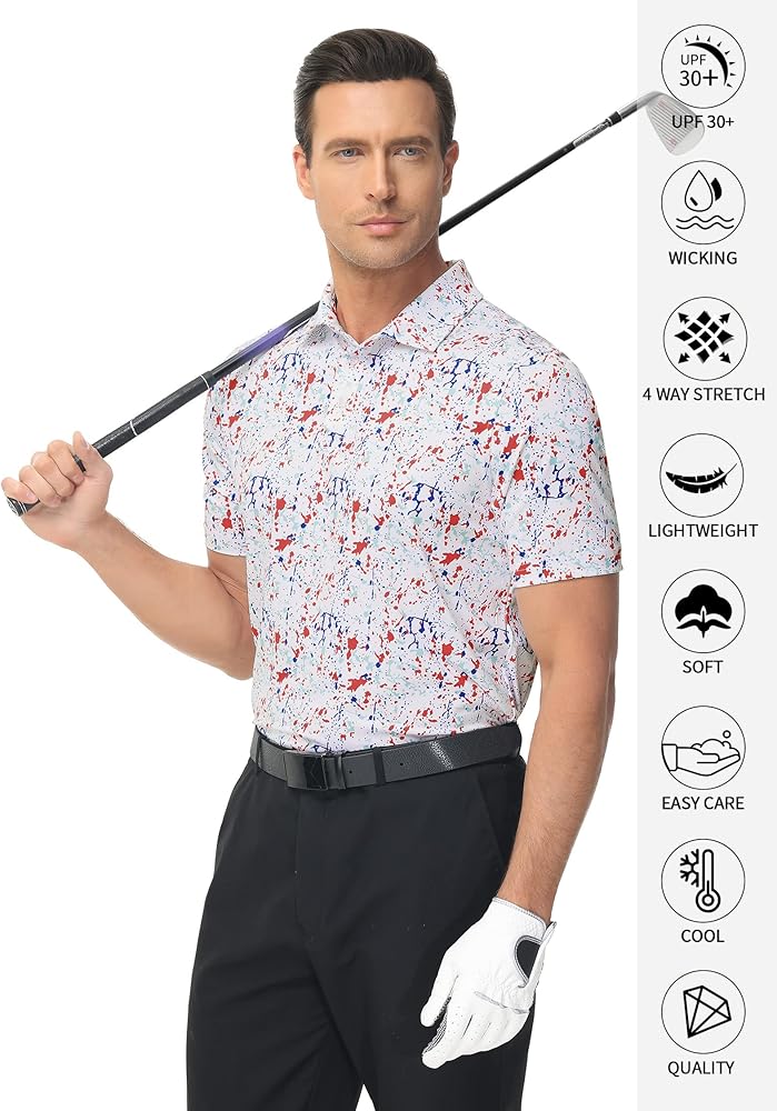 【قمصان بولو مطبوعة】قميص الجولف الرجالي هذا مصنوع من نسيج مطاطي مطبوع بالكامل يسهل العناية به ويحافظ على شكله بفضل الخياطة جيدة الصنع. إنها هدية مدروسة وعملية للرجال في حياتك.