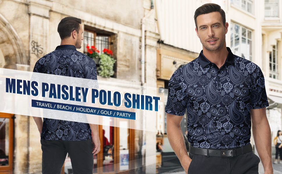 • 【مطابق】قميص بولو بيزلي للرجال مع شورت أبيض أو مع بنطال تشينو أسود، ابحث عن مظهر كاجوال وأنيق. هدية رائعة للعائلات أو الأصدقاء أو الأصدقاء!