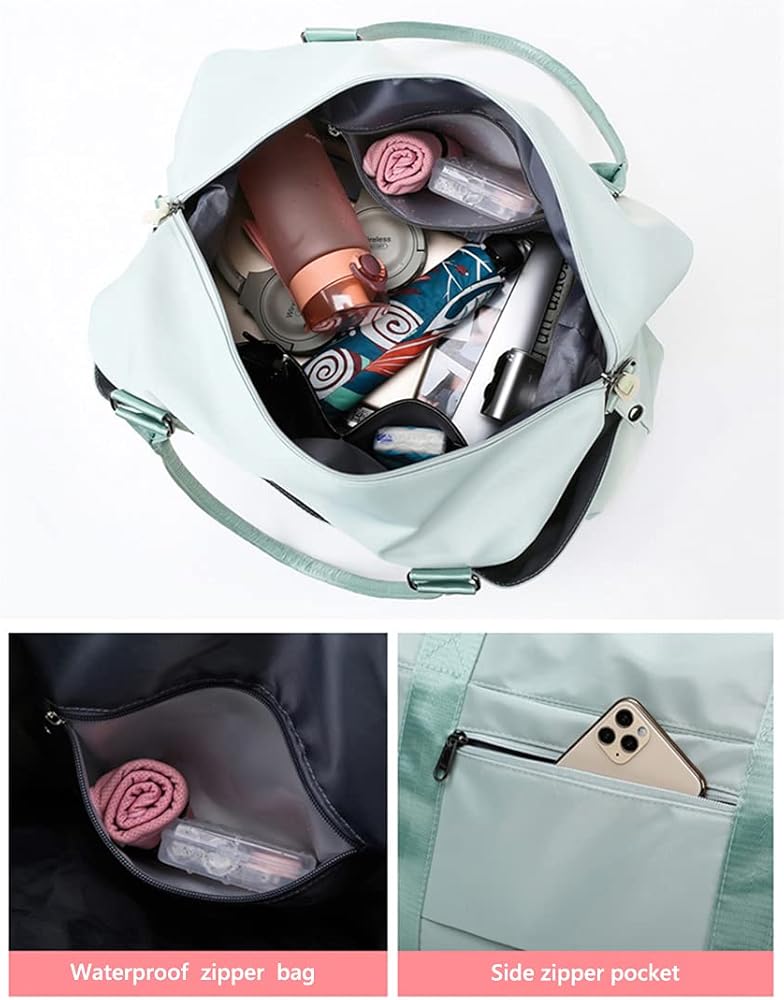 【جافة ورطبة منفصلة】: حقيبة رياضية تحمل على الصالة الرياضية مع حقيبة منفصلة بسحاب مقاوم للماء تحافظ على جميع مستلزمات الاستحمام منفصلة عن ملابس العمل، دون القلق بشأن تبلل ملابس الاستحمام. بالإضافة إلى إبقاء الأحذية منفصلة عن جميع العناصر الأخرى خاصة إذا كانت مبللة أو متسخة.