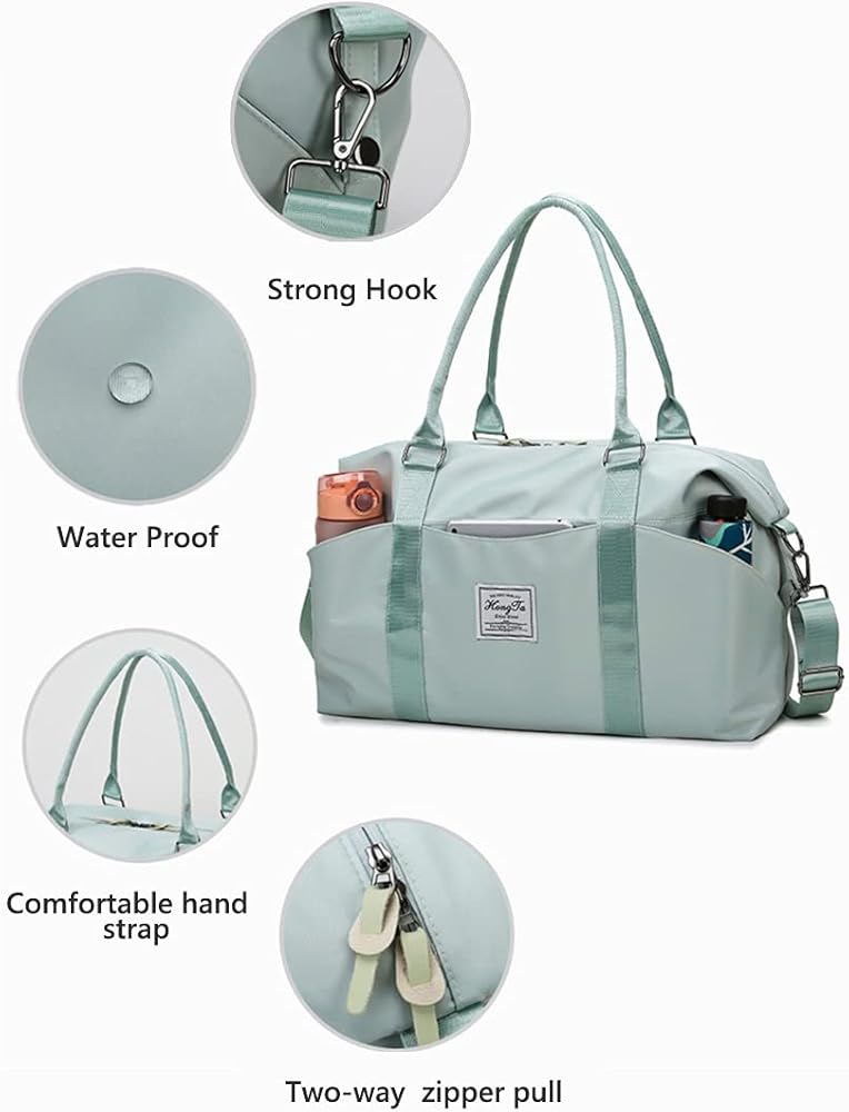 【سعة كبيرة】: تحتوي حقيبة السفر لعطلة نهاية الأسبوع هذه على جيب رئيسي واسع بسحاب يمكنه بسهولة حمل 2-3 ملابس مناسبة؛ وجيب مبلل مقاوم للماء بالكامل لملابس السباحة الرطبة أو ملابس صالة الألعاب الرياضية، وجيب واحد بسحاب في الخلف. تحتوي حقيبة السفر على كم عربة على الظهر يمكن تعليقه على الأمتعة الدوارة.