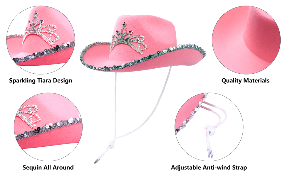- قبعة راعية البقر مثالية ليوم مسابقات رعاة البقر، ويوم الركوب، والليل الغربي، والحفلات ذات الطابع الغربي، وأعياد الميلاد والشاطئ. كما أنها خيار جيد لتزيين الحفلات وحفلات الأميرة والهالوين