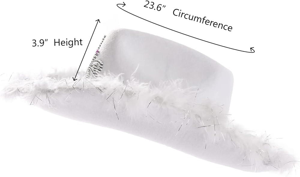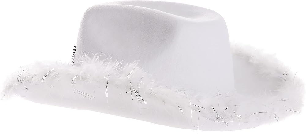 - قبعة رعاة البقر البيضاء مصنوعة من تاج الأميرة، وريش فروي لامع وحافة واسعة في المناطق النائية الغربية