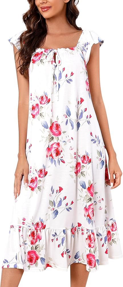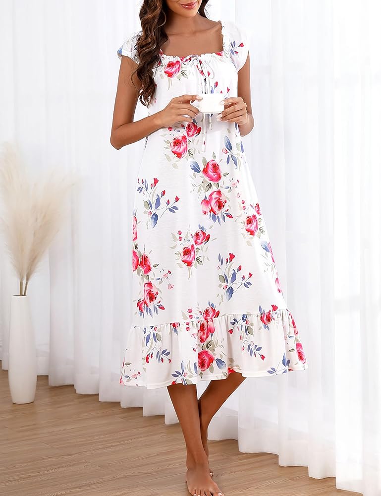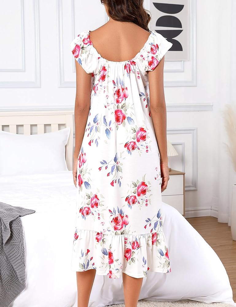 • تصميم جديد: يتميز فستان النوم الخاص بنا بحافة مكشكشة وخط رقبة مربع، مع أكمام مرفرفة، يسقط بسلاسة، مما يسمح لك بإظهار ذوقك العصري حتى في ملابس نومك. تشمل الأنماط طباعة جلد الفهد والأسود الكلاسيكي وطباعة أوراق النخيل الاستوائية والأزرق الداكن وطباعة الزهور الحمراء، مما يمنحك خيارات متعددة.