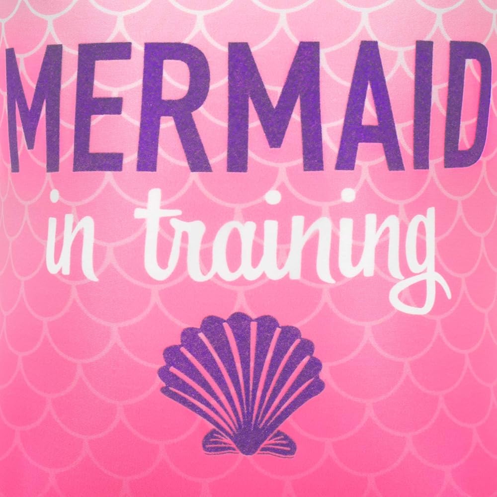 They'll feel at home in the sea with this awesome mermaid slogan swimsuit! Designed by Harry Bear, this pink swimming costume features an ombre scale print with "Mermaid in training" wording and a shell motif. The purple glitter accents add a touch of magic and sparkle to the print. At the pool or beach, wannabe mermaids will be ready for anything in this glittery swimwear.