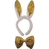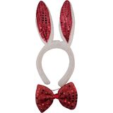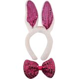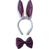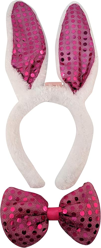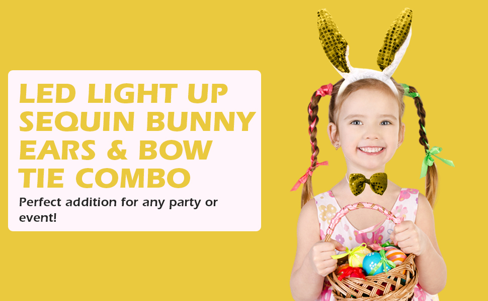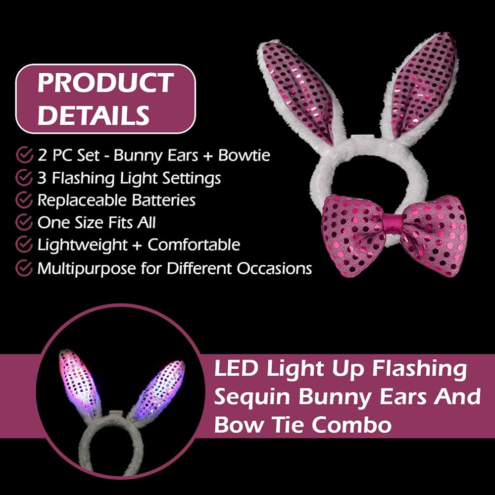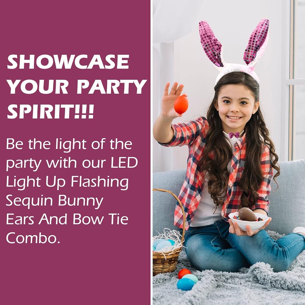 - 🐰[مجموعة مكونة من قطعتين] ❁ يتضمن كل لون 1 أذن أرنب مُزينة بالترتر LED و1 ربطة عنق مُزينة بالترتر LED