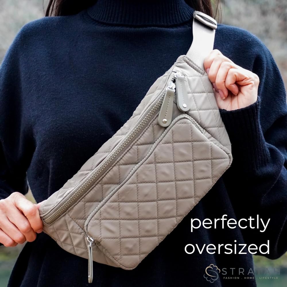 【أجهزة عالية الجودة】تتميز حقيبة Stratah ذات الحجم الكبير المبطنة حول الجسم بسحّابات جلدية متينة وسحابات غير لامعة تنزلق بسهولة.
