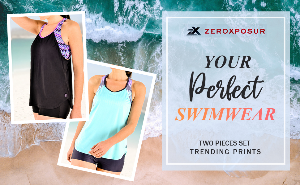 طقم ملابس سباحة قصيرة تانكيني للنساء من ZeroXposur - بدلات استحمام تانكيني للنساء مع شورت سباحة