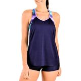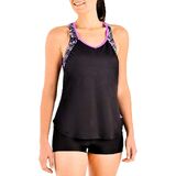 Sporty tankini top and boyleg short look great worn together or separately with other swim tops or bottoms.