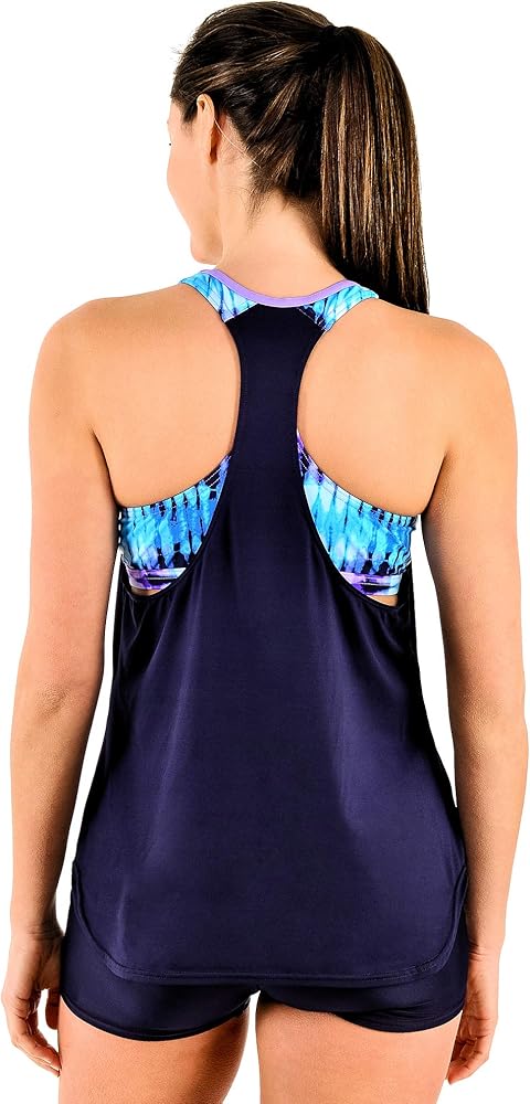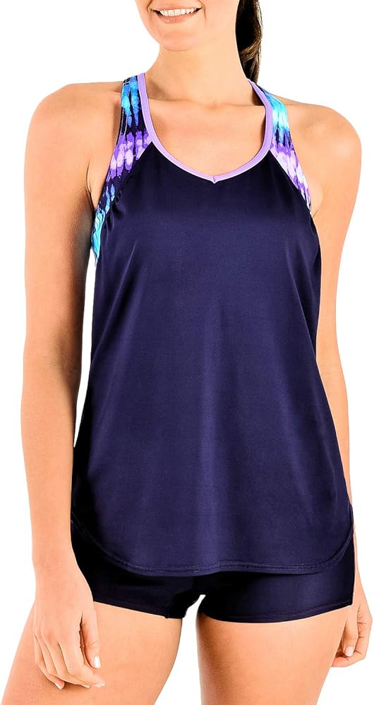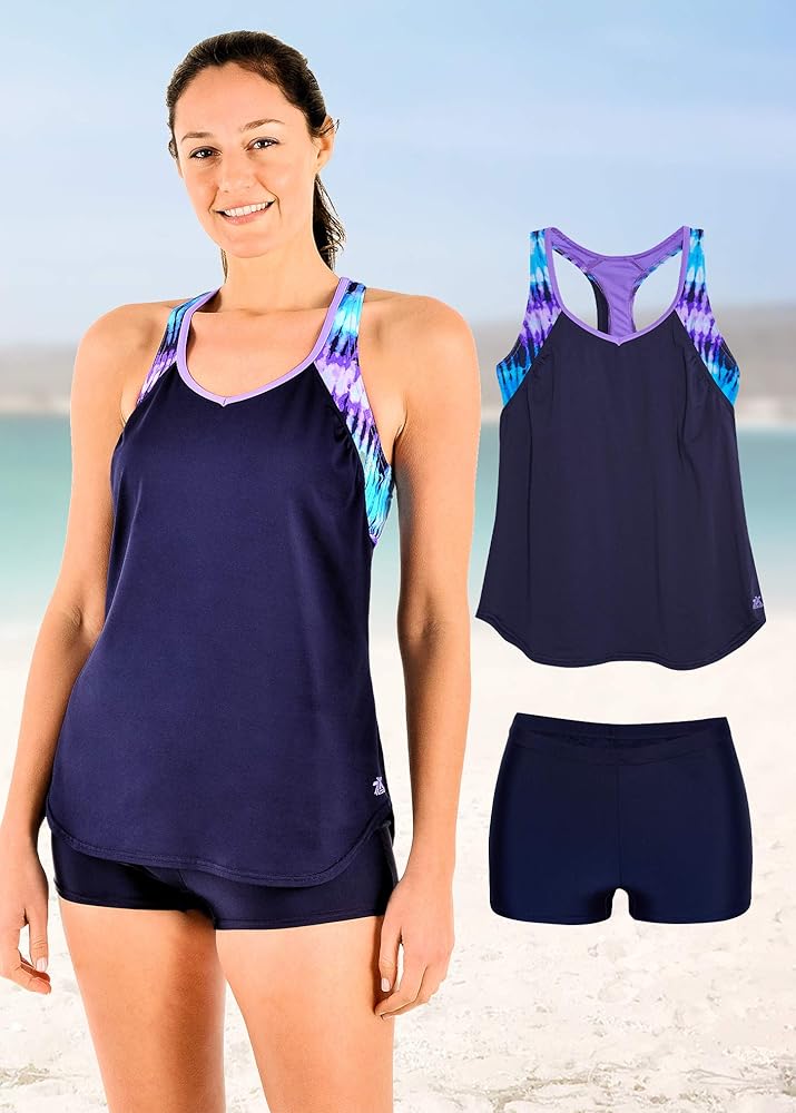 A 30+ UPF women's tankini bathing suit set that's ready for active and leisure wear at the beach, pool, and beyond.