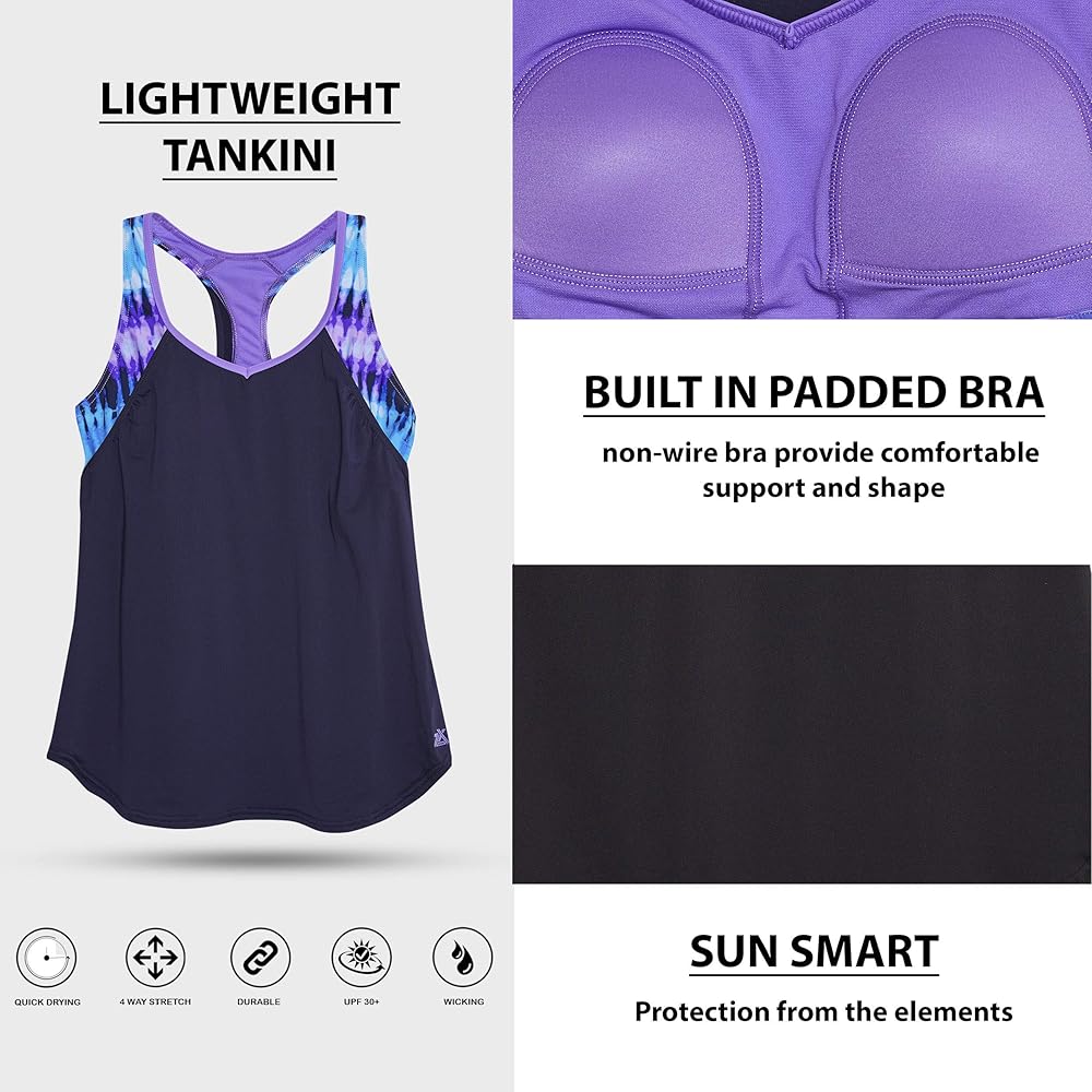 • Tankini top and bottom offer 30+ UPF protection from the sun. Swim top is also lined in a high-quality nylon-spandex tricot