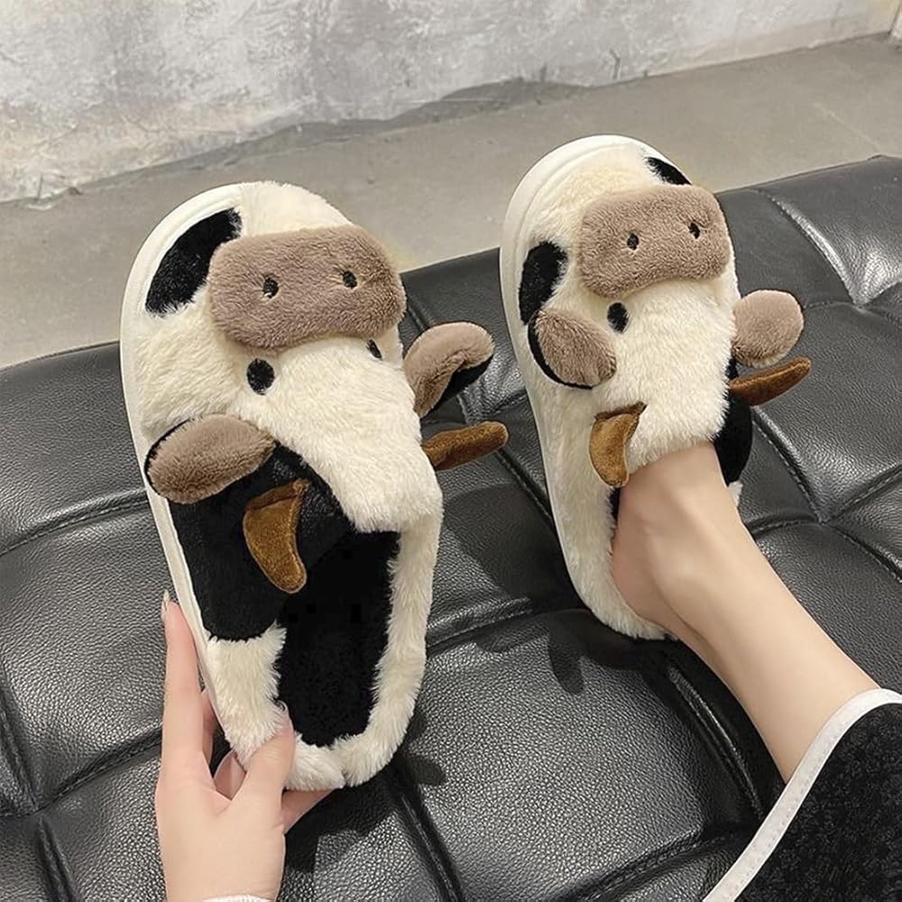 • 【أحذية شباشب غامقة】 بطانة الشباشب والجزء العلوي مصنوعة من نسيج الفرو، ناعمة ورقيقة وناعمة. شباشب البقرة ذات الفراء اللطيفة للغاية تمنع القدم من التجمد، خاصة في فصلي الخريف والشتاء.