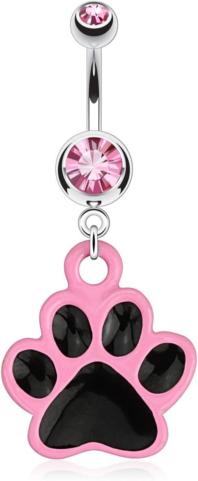 This belly button ring features an adorable paw design in black enamel outlined in pink. Crafted from high quality stainless steel, this will surely look great on you!