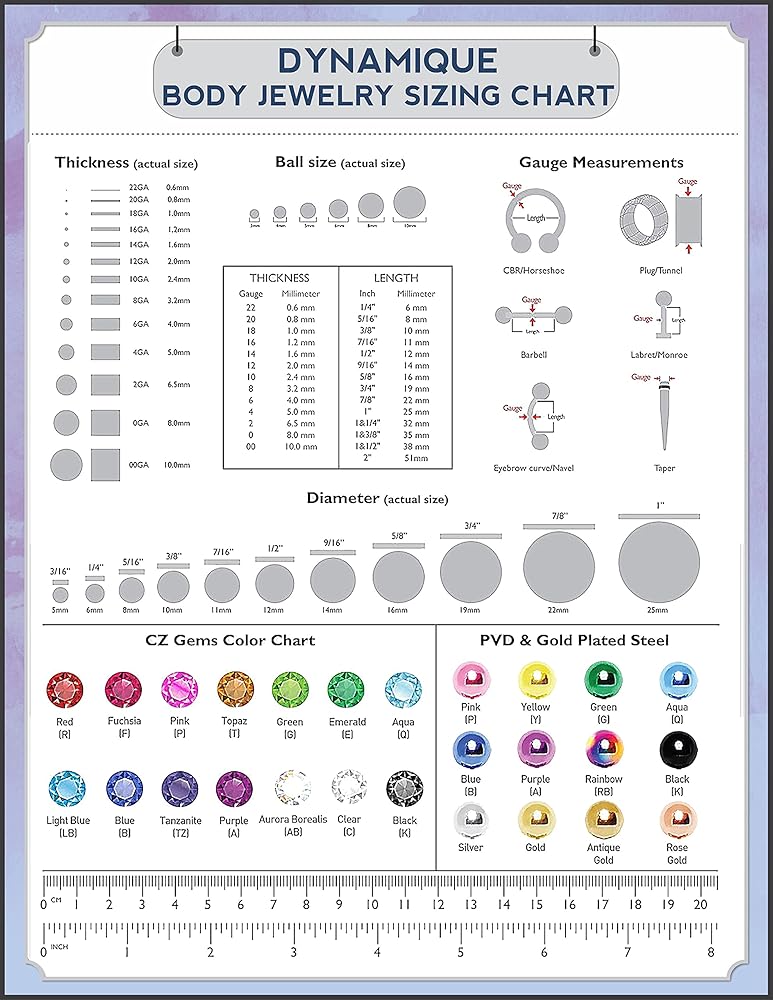 Thickness: 14GA (1.6mm), Length: 3/8" (10mm), Ball Size: 5 & 8mm.