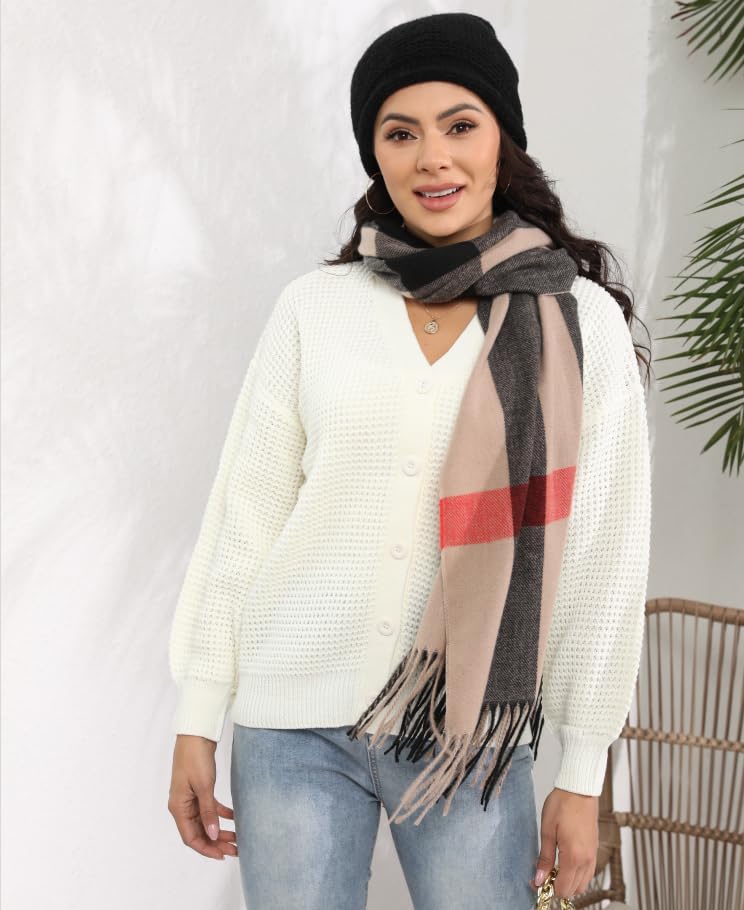 【تصميم فريد】يتميز هذا الوشاح بشكل منقوش متعدد الألوان، وهو أكثر أناقة. هذا الوشاح مناسب في فصلي الخريف والشتاء للحياة اليومية والحفلات والعمل والمناسبات الكاجوال. تصميم شرابة رائع يعكس مزاج مرتديه ومناسب لمعظم المناسبات.