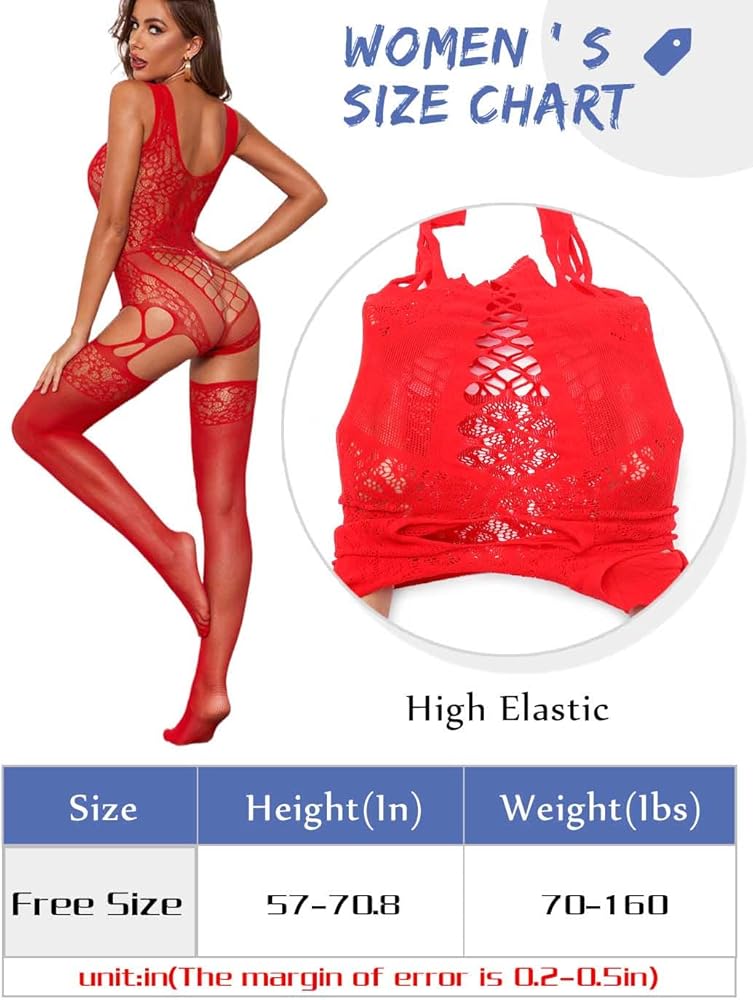 • Body stockings lingerie is free size,with good stretchability,suitable for women height 57-70.8 inches and weigh 70-160 lbs.