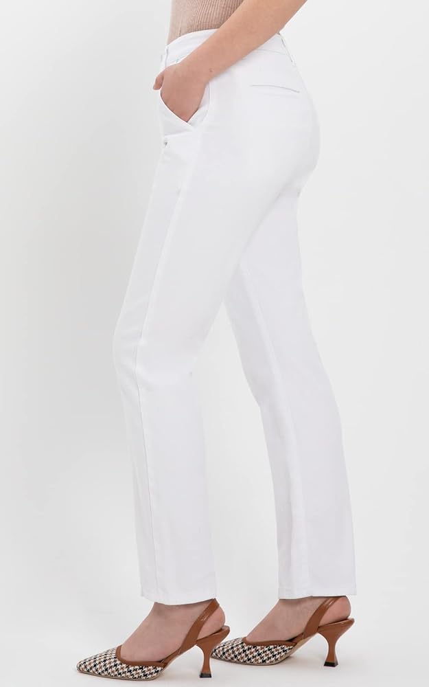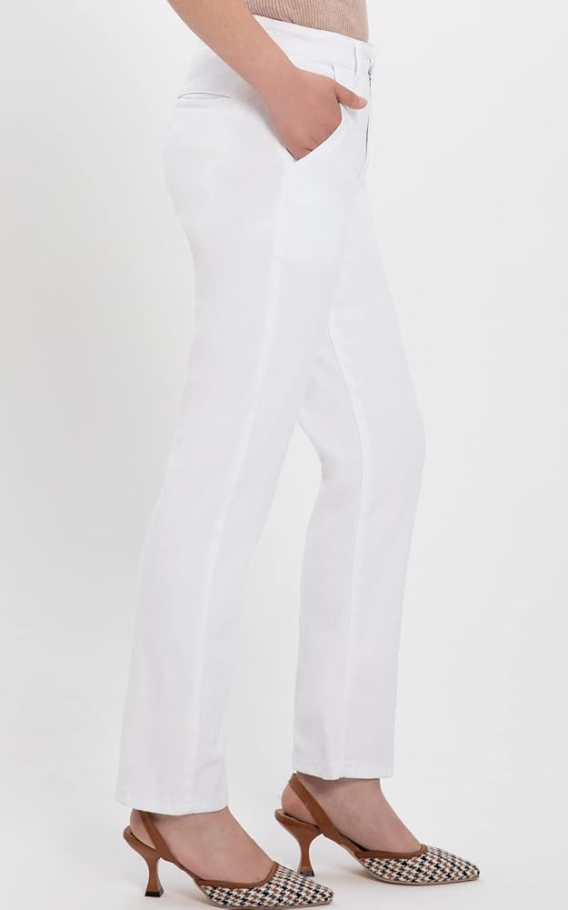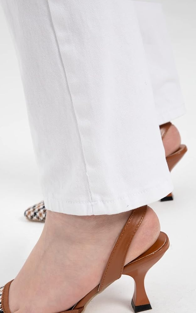 المميزات: بنطال مريح بلون سادة للنساء، نسيج من مزيج القطن والألياف اللدنة، ارتفاع متوسط، نمط تشينو كلاسيكي من نسيج قطني مطاطي مع حلقات حزام وجيوب جانبية، لون عادي، سحاب، إغلاق بزر، بنطال كاجوال مستقيم الأرجل للنساء. مجموعة متنوعة من الألوان لتختار.