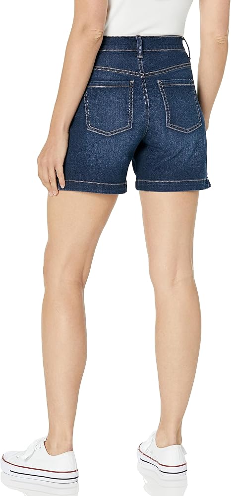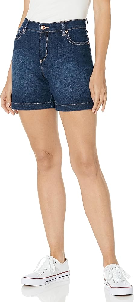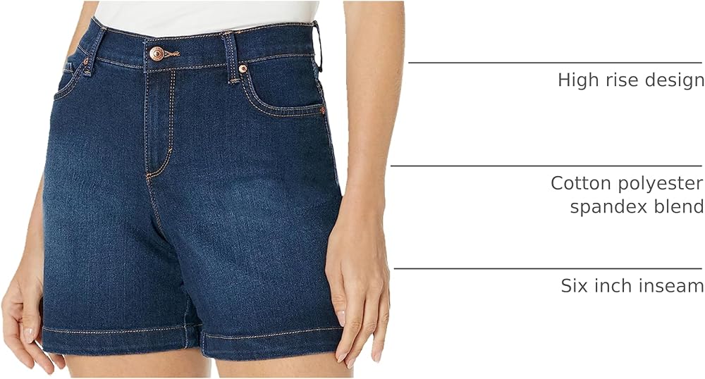 Gloria Vanderbilt Amanda Basic jean Short sits at natural waistline with functional pockets, front zipper fly on a regular fit body with finished hem. This cute high rise short is contoured at hips for that comfortable feel you've come to love. Pairs great with any top from fashionable to a basic tee and any footwear from trendy shoes to your favorite sneakers. Perfect to attending class, on vacation, camping or any out door activity. Available in assorted color washes, see color name for specifics. Gloria Vanderbilt Women's Apparel, Effortlessly fun and stylish. A versatile yet classic look that attracts and connects with the modern sensibility of consumers of all ages.