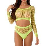 نسيج شبكة صيد السمك: البدلة مصنوعة من نسيج شبكة صيد السمك، وهو شفاف وله ملمس مثير. القماش الشبكي قابل للتمدد أيضًا، لذا فهو يناسب جسمك جيدًا ومريح في الارتداء.