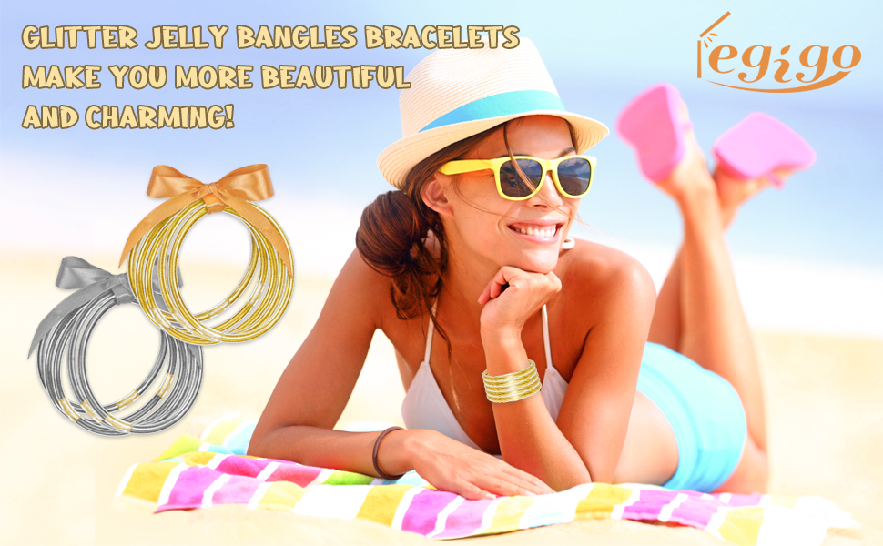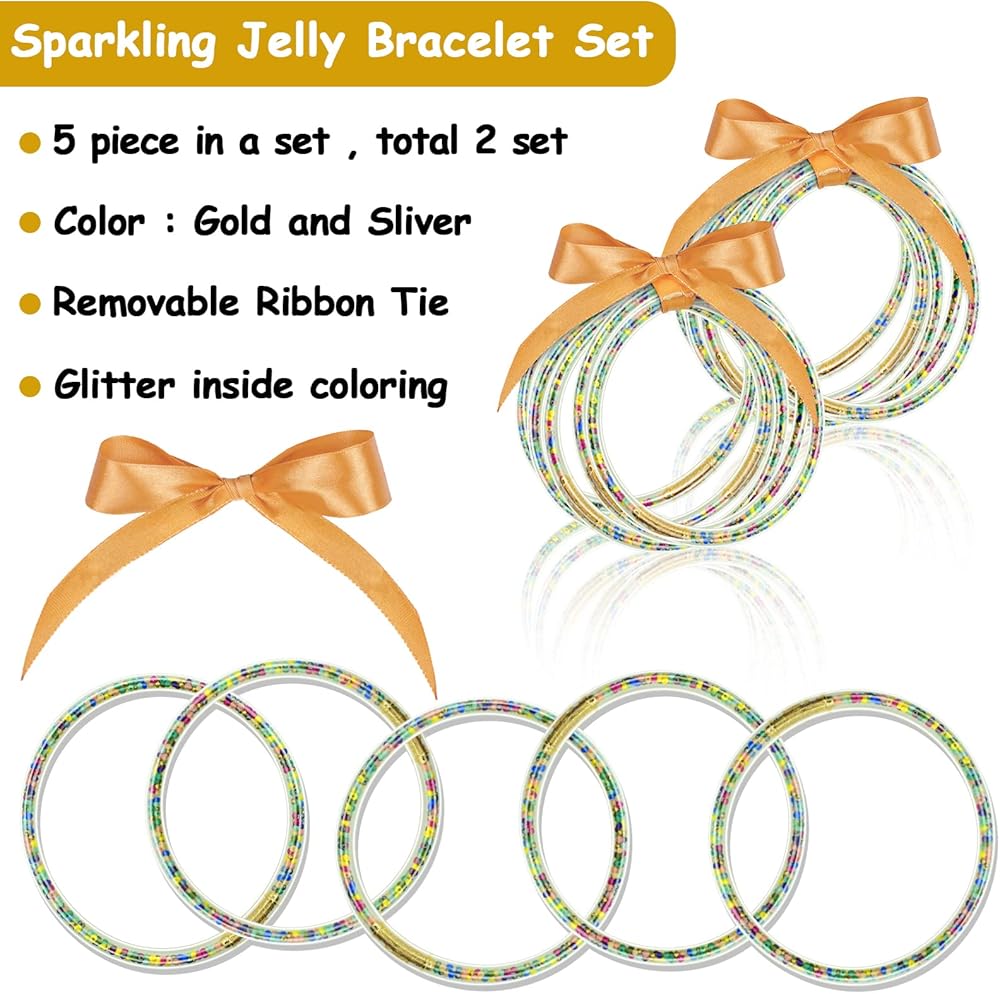 【تشمل العبوة】سوف تحصل على مجموعتين من 10 أساور سيليكون لامعة، ذهبية وفضية، يمكن أن تلبي احتياجاتك من حيث الكمية والألوان، ونمط الموضة، وهي مناسبة للنساء أو الفتيات لارتدائها للعمل أو التسوق، مثالية للحفلات وحفلات حمام السباحة. والشاطئ وما إلى ذلك. يمكن ارتداؤه جيدًا مع الملابس الرسمية أو الكاجوال.
