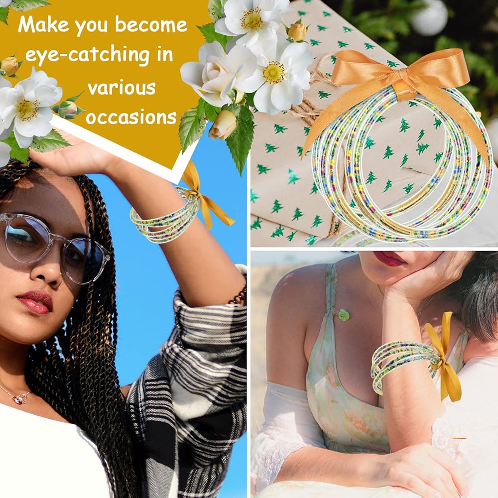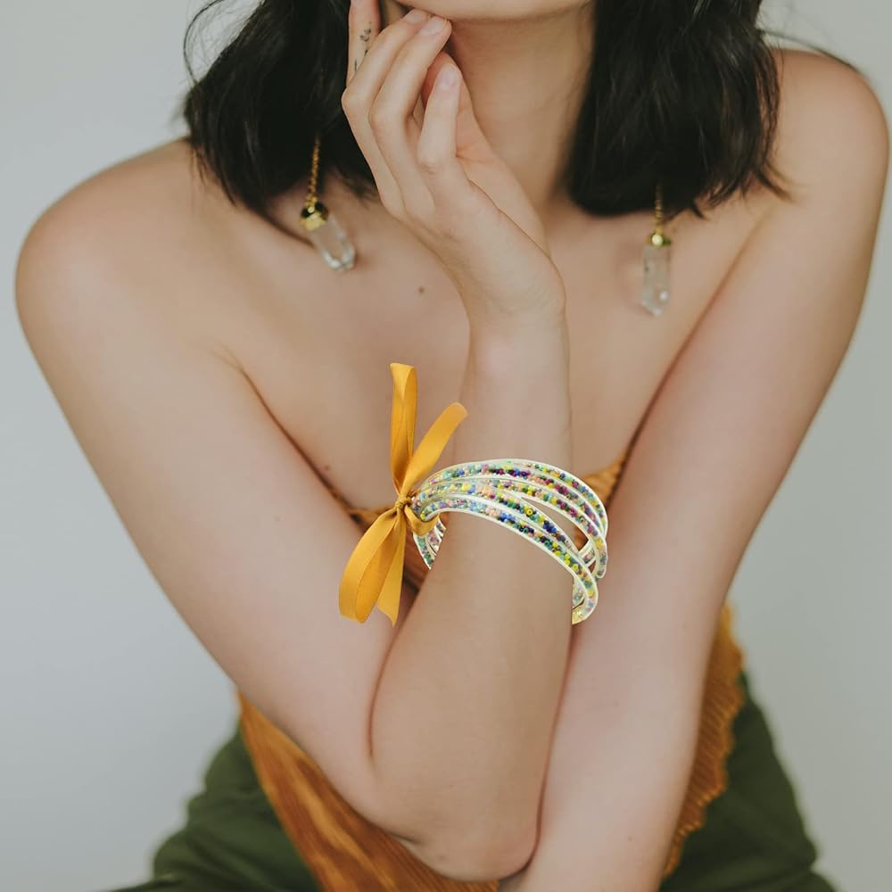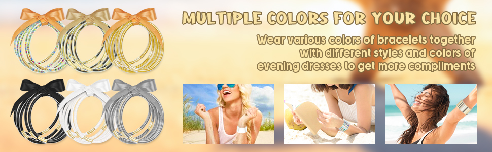 【أساور لجميع الأحوال الجوية】سوار الجلي اللامع خفيف الوزن وصامت ومقاوم للماء مع ألوان زاهية وشكل رائع، مقاس القطر الداخلي القياسي 2.6 بوصة مما يمنحه محيط 8 بوصة، ويناسب معصم معظم النساء والفتيات، وعندما إذا كنت ترتدي السوار طوال اليوم، يمكنك الاستمتاع بملمس خفيف دون أي عبء.