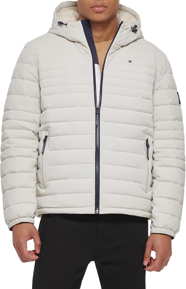هذا الجاكيت خفيف الوزن القابل للتمدد المصنوع من البوليستر القابل للطي مع غطاء رأس مبطن بالشيربا من تومي هيليفيغر هو قطعة الملابس الخارجية ذات الطبقات المثالية لخزانة ملابسك الشتوية.