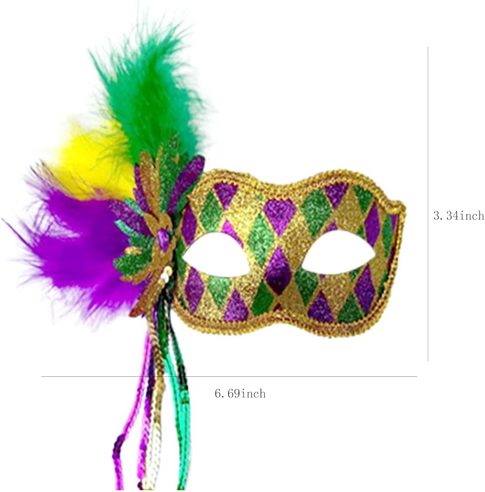 Mardi Gras Masquerade Mask for Women,Venetian Carnival Mask with Feathers for Mardi Gras Costumes Party Favor Accessories