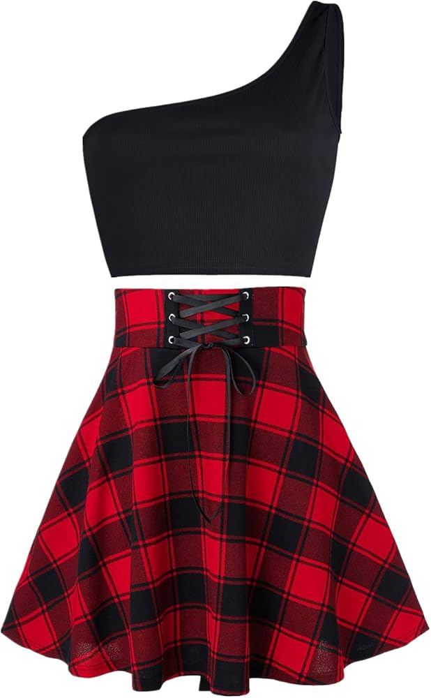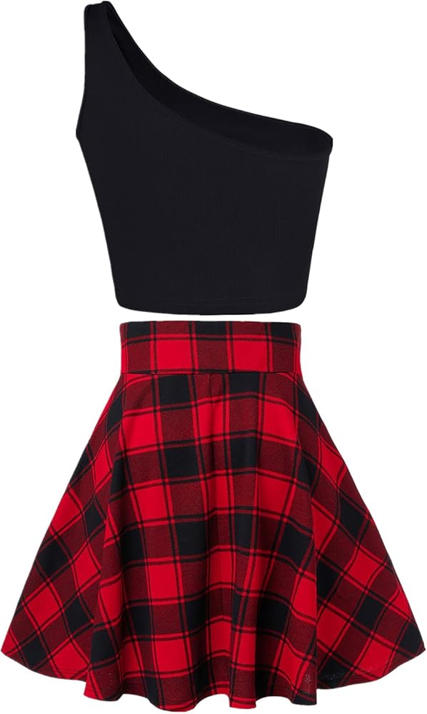 ميزات التصميم: بلوزة قصيرة بكتف واحد، تتماشى مع تنورة قصيرة منقوشة، تجعلك أكثر جاذبية وسحرًا وعصرية، وتبدو كفتاة مدرسية أصغر سنًا. التنورة القصيرة المنقوشة، سحاب للإغلاق، رباط قابل للتعديل، خصر مرتفع، حزام خصر عريض، تصميم على شكل حرف A، النمط المطوي بنمط منقوش يضيف إحساسًا بالأناقة والتفرد إلى الشكل العام، وهو أكثر جاذبية بصريًا، ومشرقًا تغطي حاشية التنورة الوركين، مليئة بالإغراء والإثارة، وتضيف الكثير من الإثارة والإثارة، وتزيد من سحرك في أي وقت.
