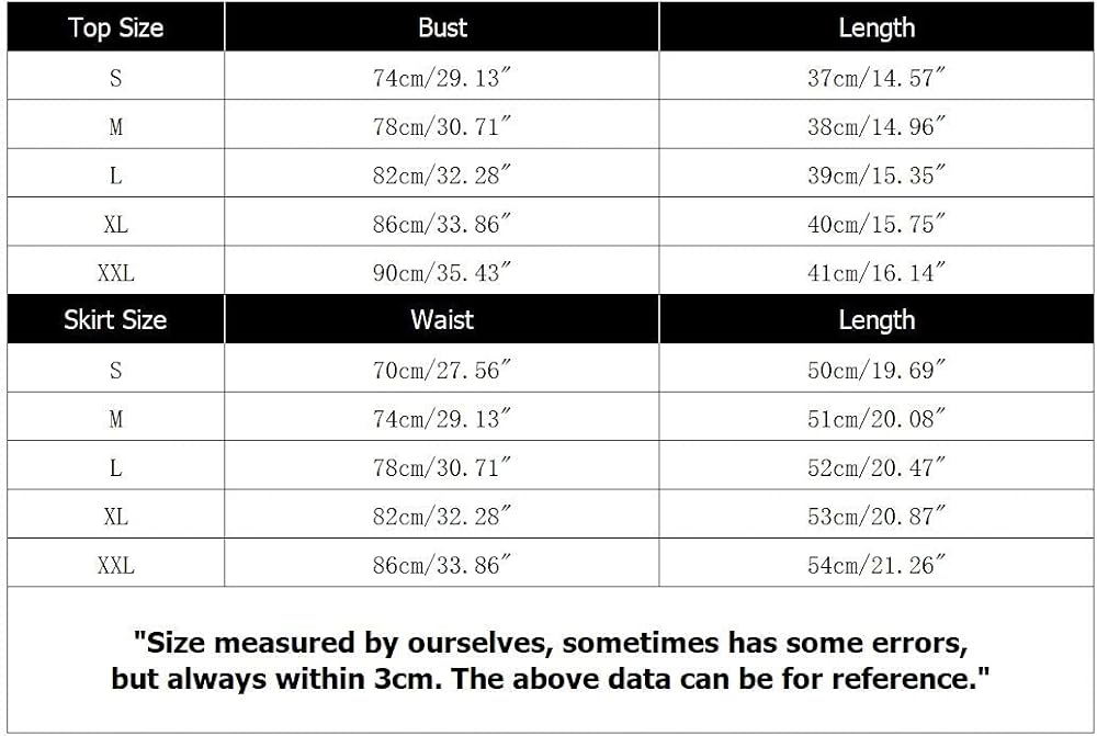 محتوى العبوة: 1 × مجموعة تنورة نسائية منقوشة (توب قصير + تنورة صغيرة). العناية بالملابس: غسيل يدوي أو غسيل في الغسالة بحد أقصى 40 درجة مئوية، بدون استخدام مبيضات وتعليقه ليجف، والكي بقطعة قماش مضغوطة. يرجى التحقق من معلومات المقاس قبل الطلب!