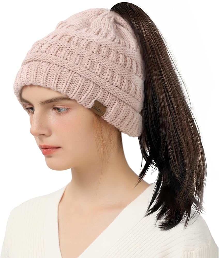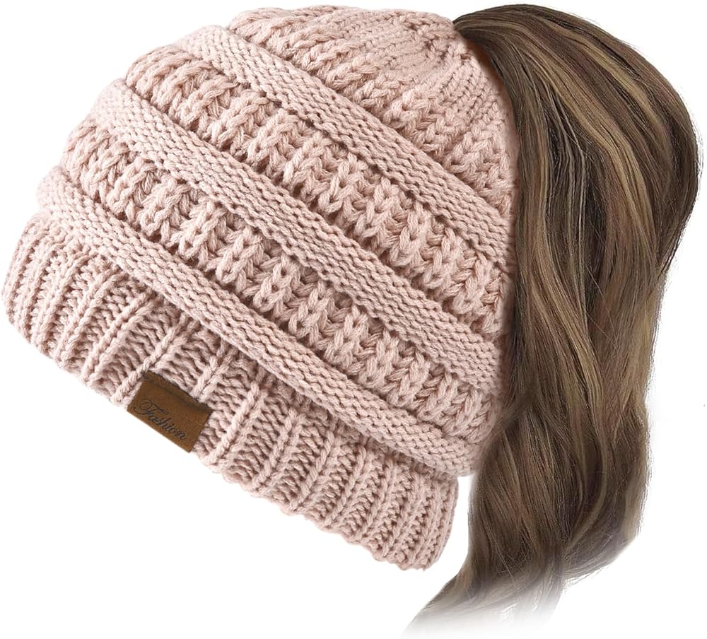 👒 CASUAL BEANIE HATS - This ponytail hats for women is classic and popular, casual and stylish, being an indispensable fashionable accessory in winter. It is easy to pair with all of women's winter clothes, leisure and practical.