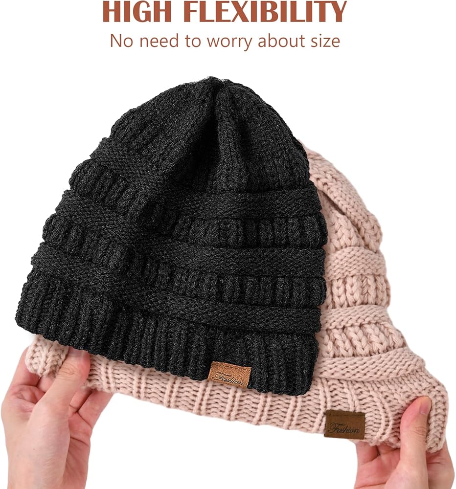 👒 ONE SIZE FITS MOST - The beanie with ponytail hole is high elasticity which makes this high ponytail hats for women suitable for most people. This ponytail hat can fully cover your ears and snuggle your head, making a perfect fit. Great for all hair types: natural, straight, thick, and thin. Wear with a ponytail, messy bun, sock bun, half-bun, up-do, braids, and more. High pony tail or bun can keep you looking super fashionable.