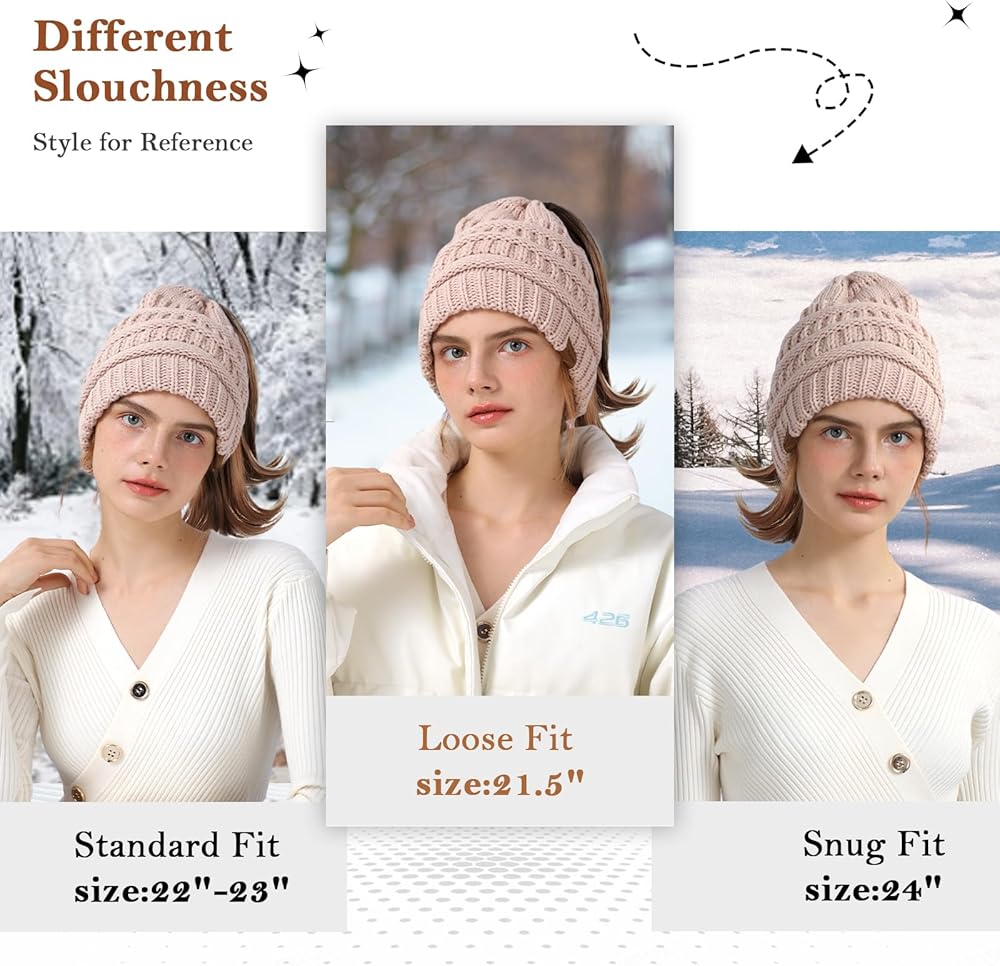 👒 MULTIPLE OCCASIONS - This ponytail beanie is perfect for indoor or outdoor activities such as skiing, sledding, snowboarding, winter vacation, winter sports, camping, hiking and daily use.