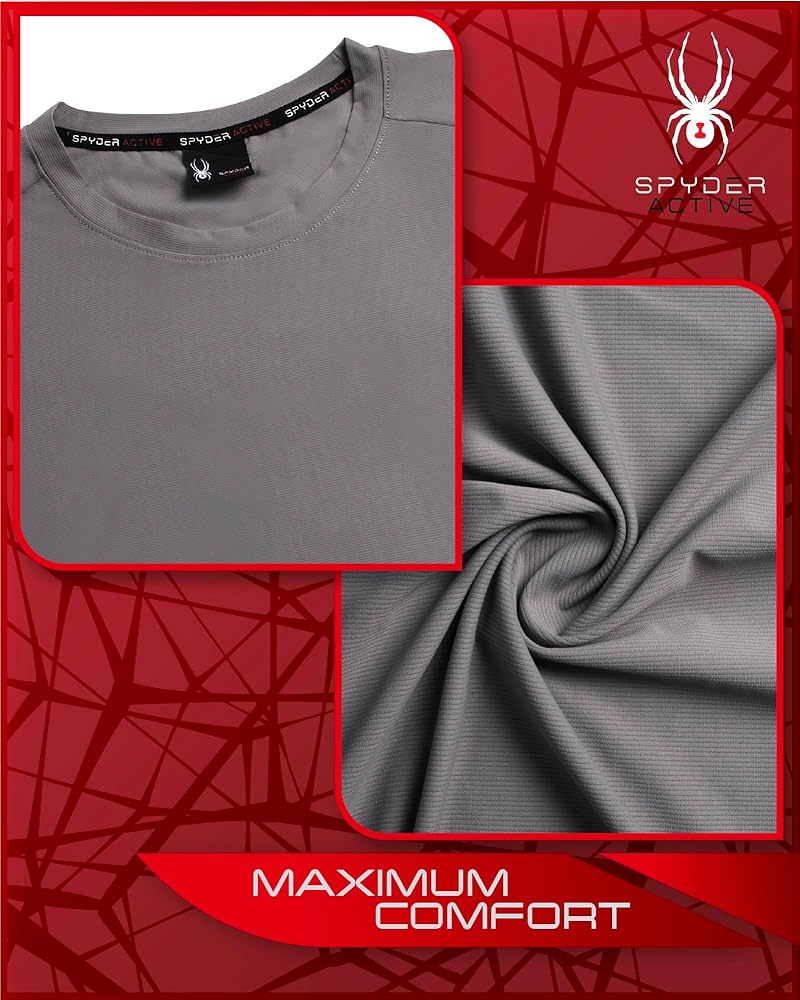 • COMFORTABLE DESIGN: Breathable and lightweight Spyder men's t-shirts feature a crewneck cut and skin-friendly fabric for extra comfort; This gym shirt t-shirt is a must-have for every active guy; Perfect short-sleeve t-shirts for casual everyday wear, hanging at the campus, jogging, basketball, skateboarding, and all outdoor and indoor sports