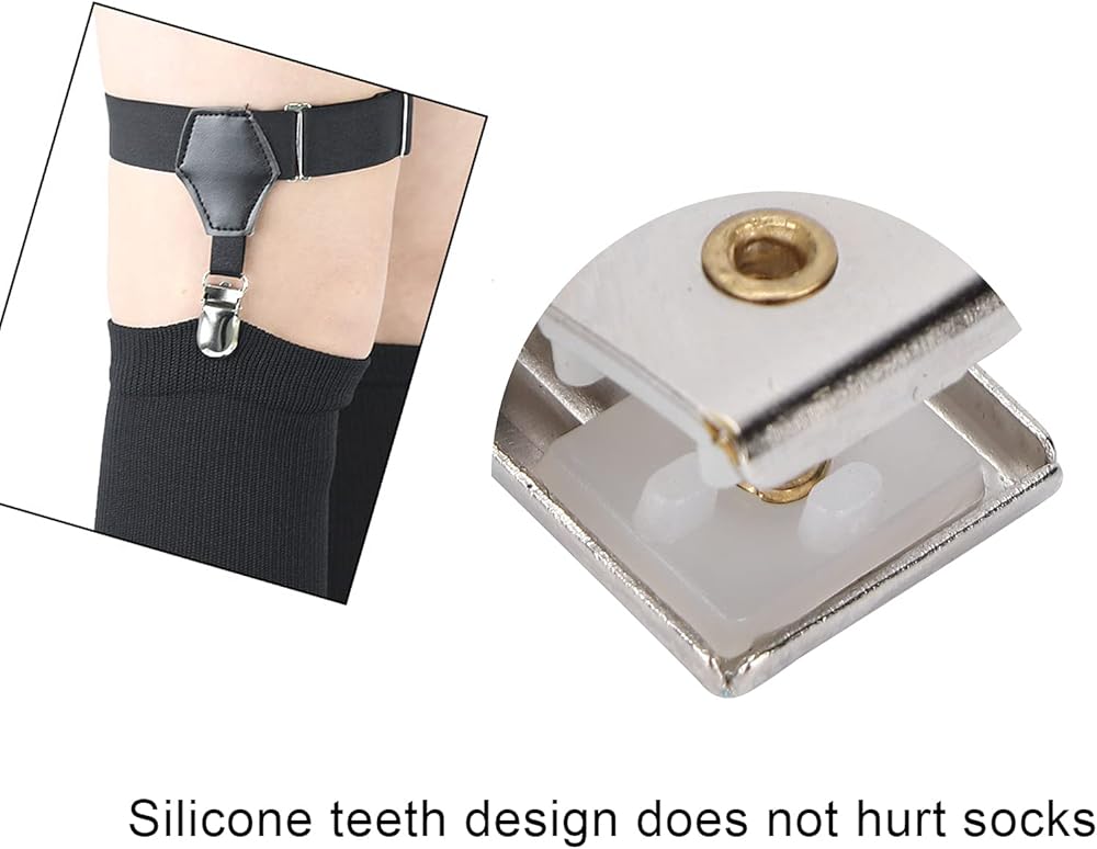 ADJUSTABLE AND NON-SLIP: The size of leg harness garter belt is approx. 10.2-21.7in, you can adjust it into proper size according to your actual needs; With anti-slip clips, so you don't worry about that them will fall down; Adjustable size and elastic material will fit for the most ladies