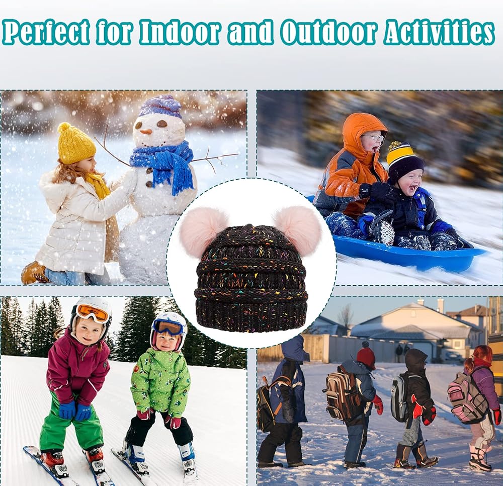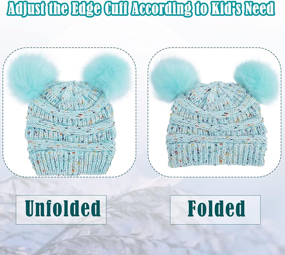 🌟 Great Quality -- The knitted beanie cap is made of durable and softly knitted materials for added warmth and insulation, suitable for spring fall and winter. It can easily cover head and ears, let your kids enjoy warmth and protect your littles even in the coldest winter.